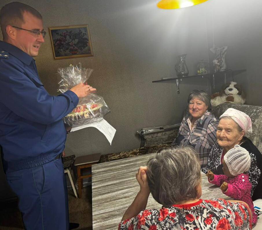 Во время визита прокурор выразил благодарность за неоценимый труд в годы Великой Отечественной войны и поздравил Александру Митрофановну с 80-летием Победы.
