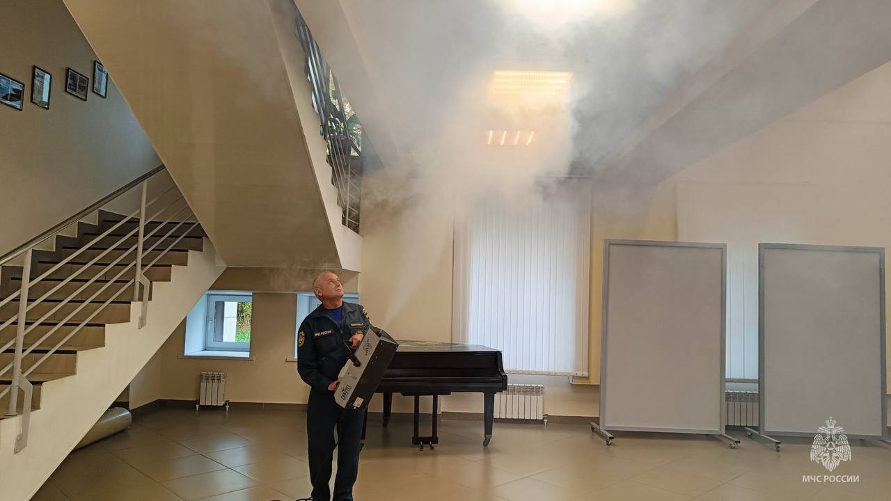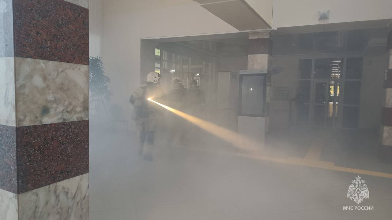 По легенде учений, возгорание произошло в зрительном зале учреждения. Для создания условий, применялся генератор безопасного дыма. Персонал и посетители учреждения оперативно приступили к эвакуации.