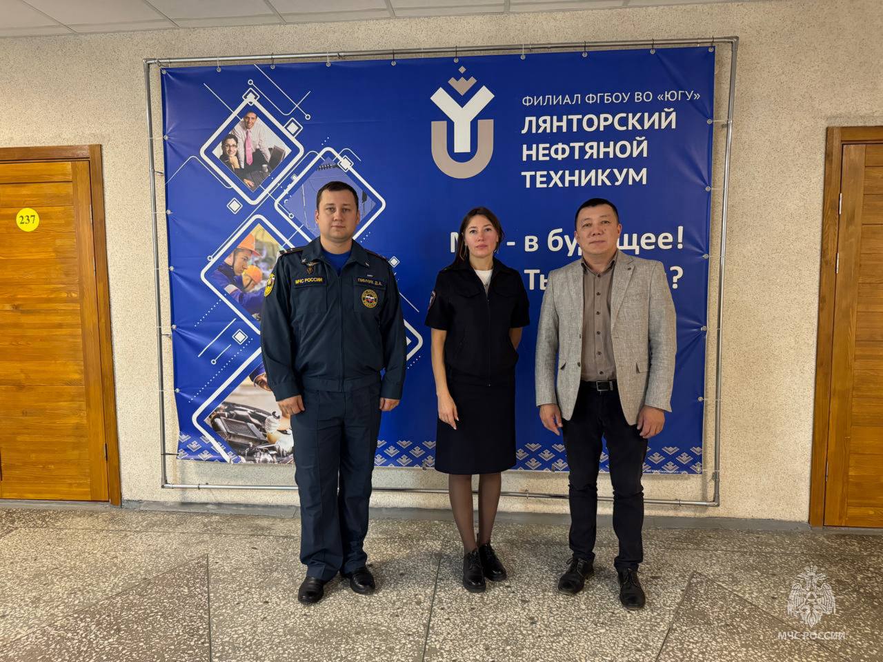 Представители трех экстренных служб организовали совместную профилактическую встречу со студентами Лянторского нефтяного техникума.
