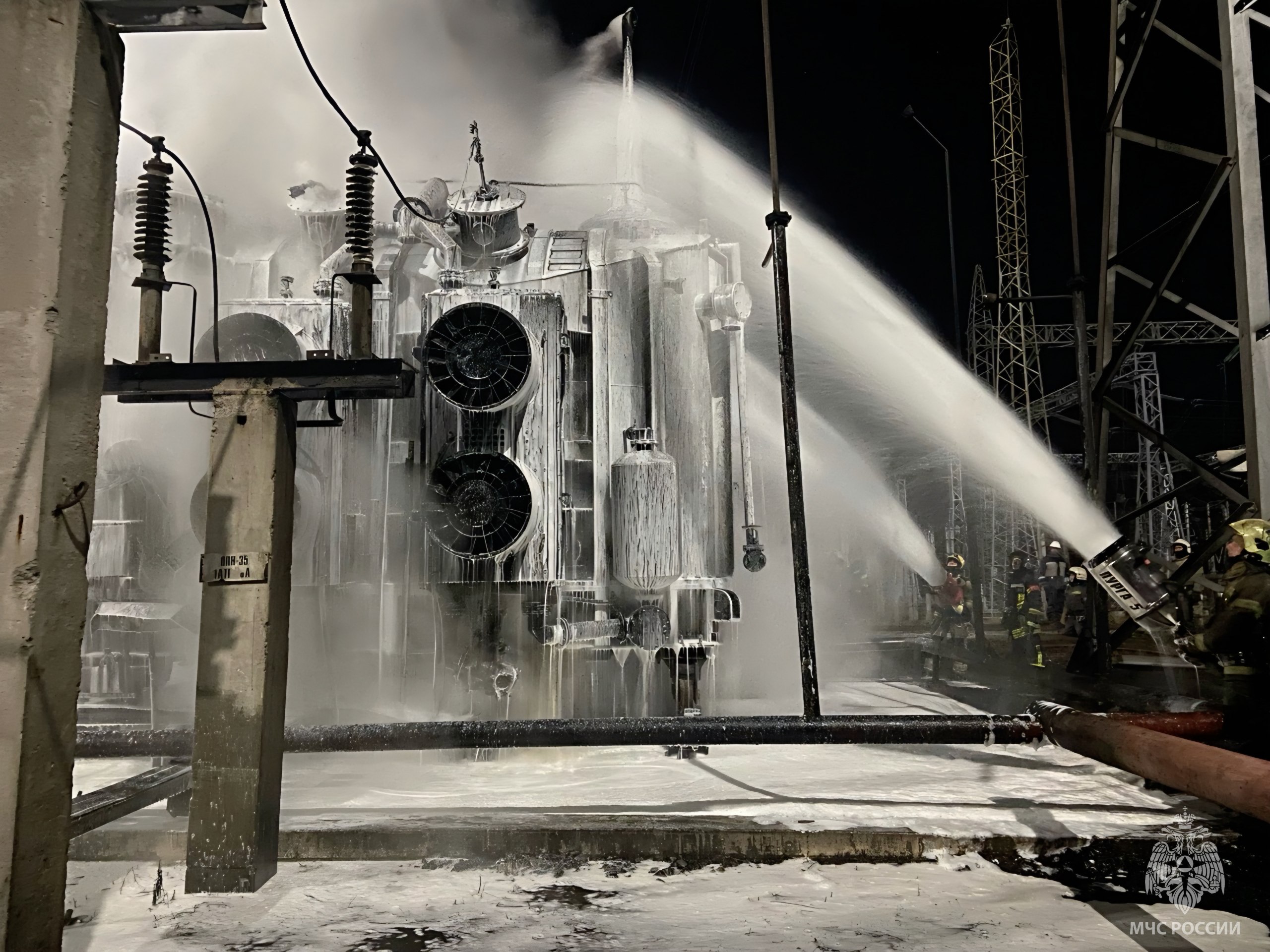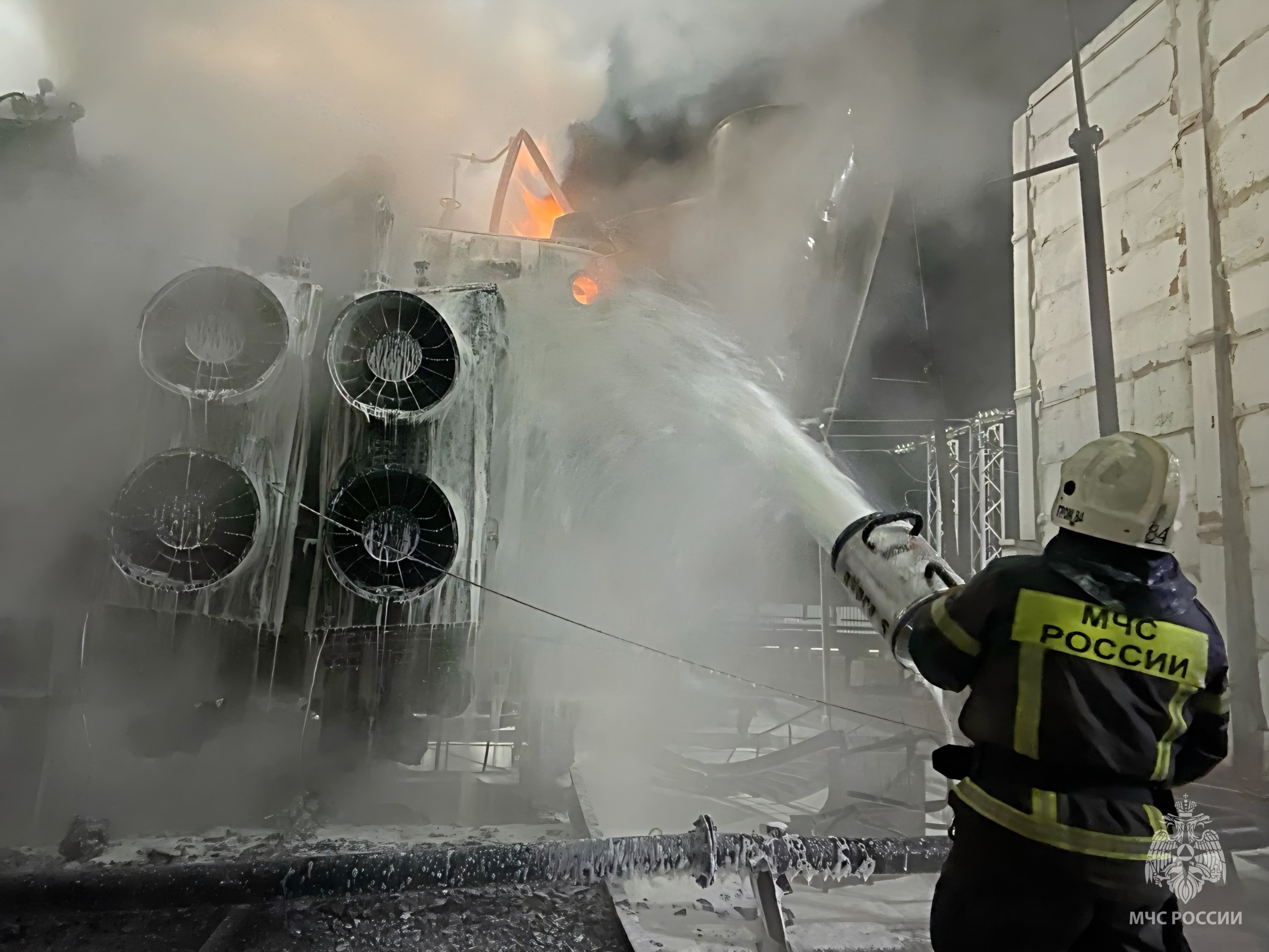 Югорские огнеборцы задействовали пенную атаку и водяные стволы, чтобы не допустить распространения огня.
