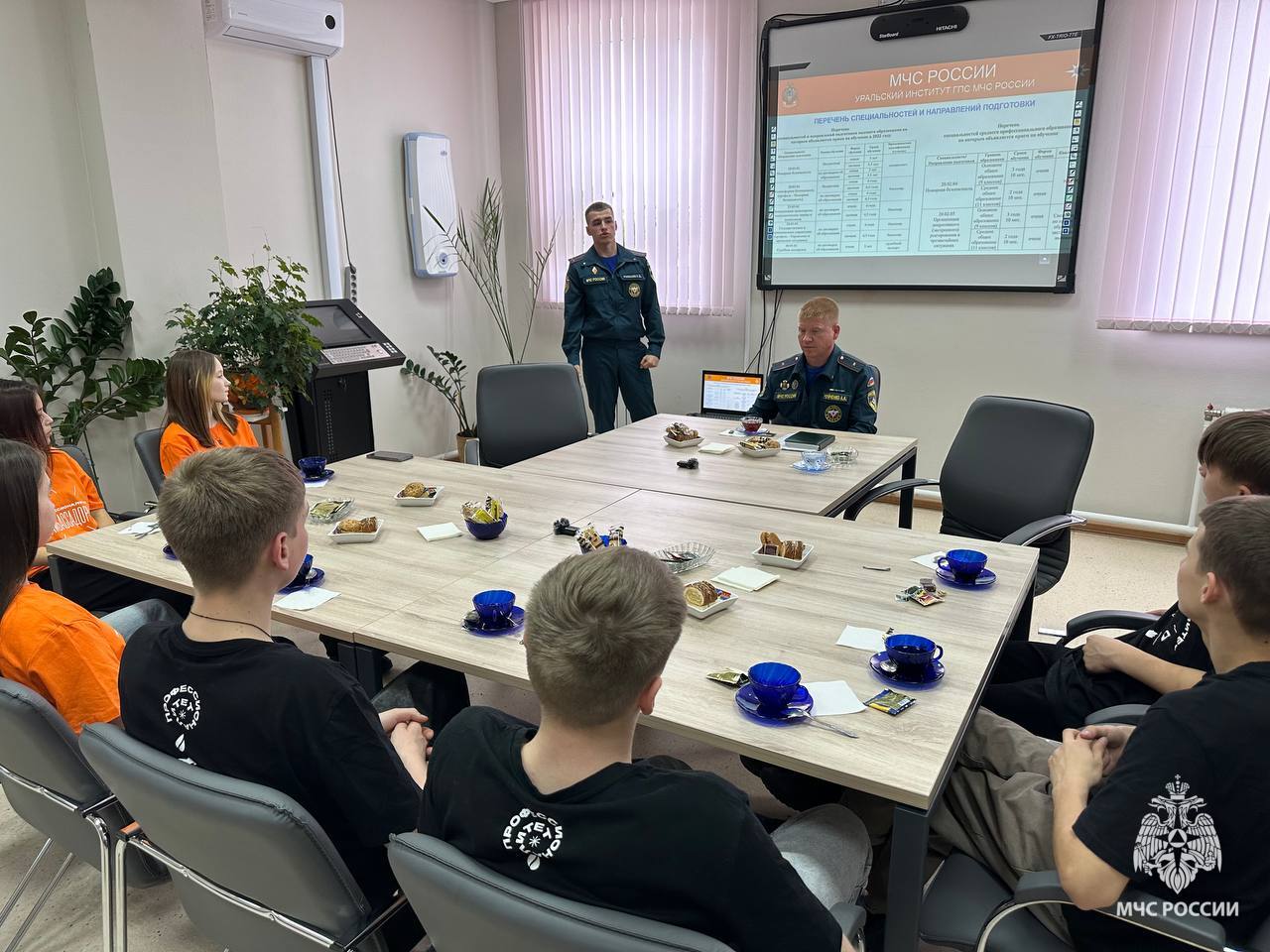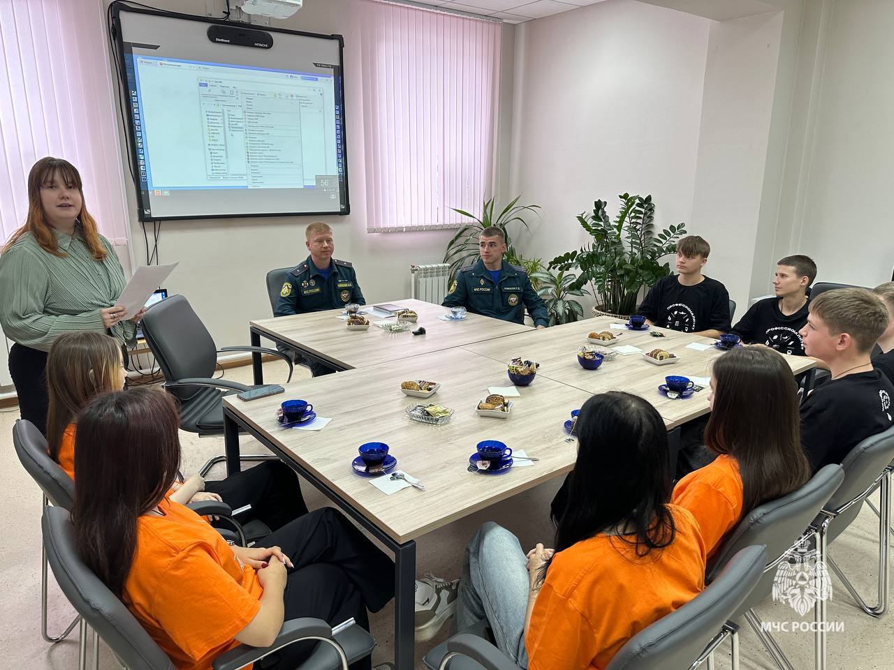Гостями встречи стали заместитель начальника 4 пожарно-спасательного отряда Александр Чуйченко и начальник караула 72 ПСЧ Роман Романов.