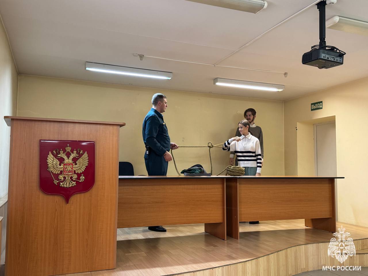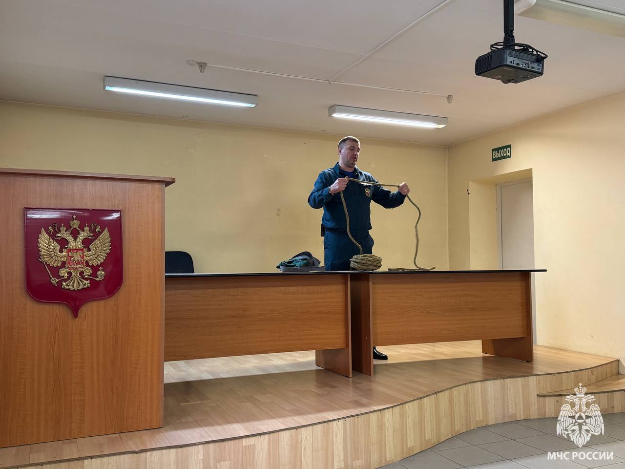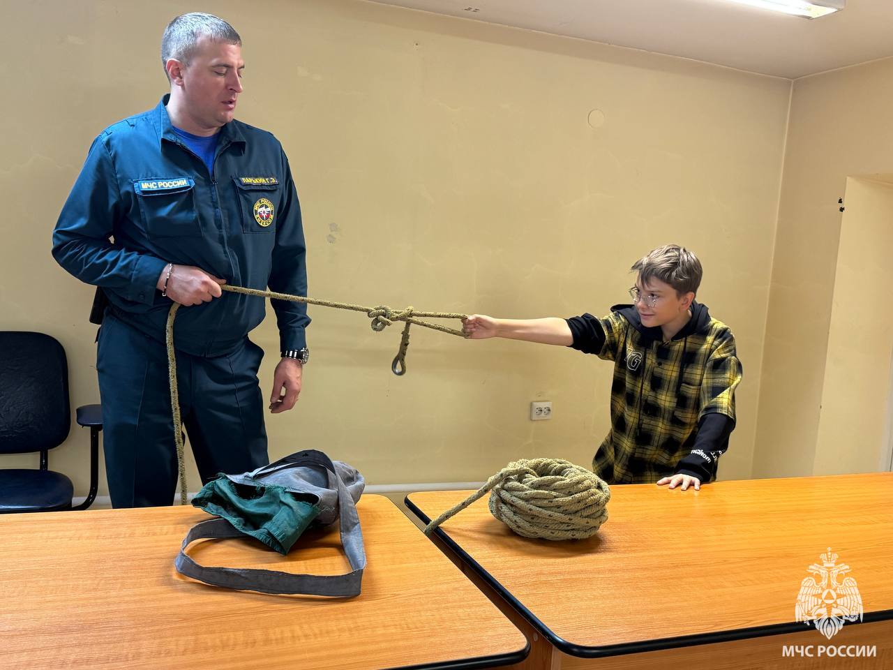 Пожарный рассказал школьникам о профессии и провёл мастер-класс по узлам