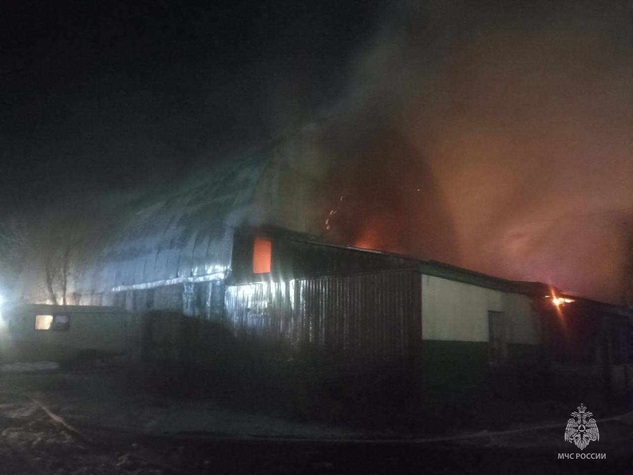Первые пожарные расчеты прибыли к месту вызова через 5 минут. На момент прибытия пожарных подразделений происходило горение пристроя бытового назначения, существовала угроза распространения пожара на здание арочного типа.
