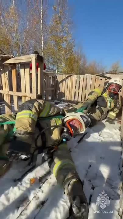 В ходе выполнения учебно-боевой задачи один из пожарных, выполнявший роль пострадавшего, был оперативно обнаружен и эвакуирован из зоны условного задымления.