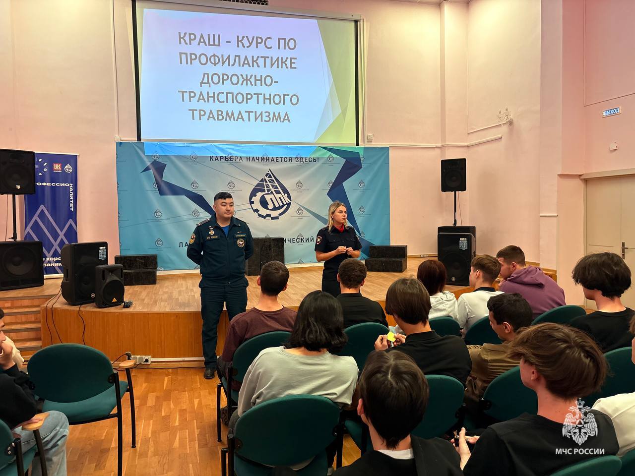 Сотрудниками 92 пожарно-спасательной части и Госавтоинспекции был организован совместный профилактический курс для учащихся Лангепасского политехнического колледжа.