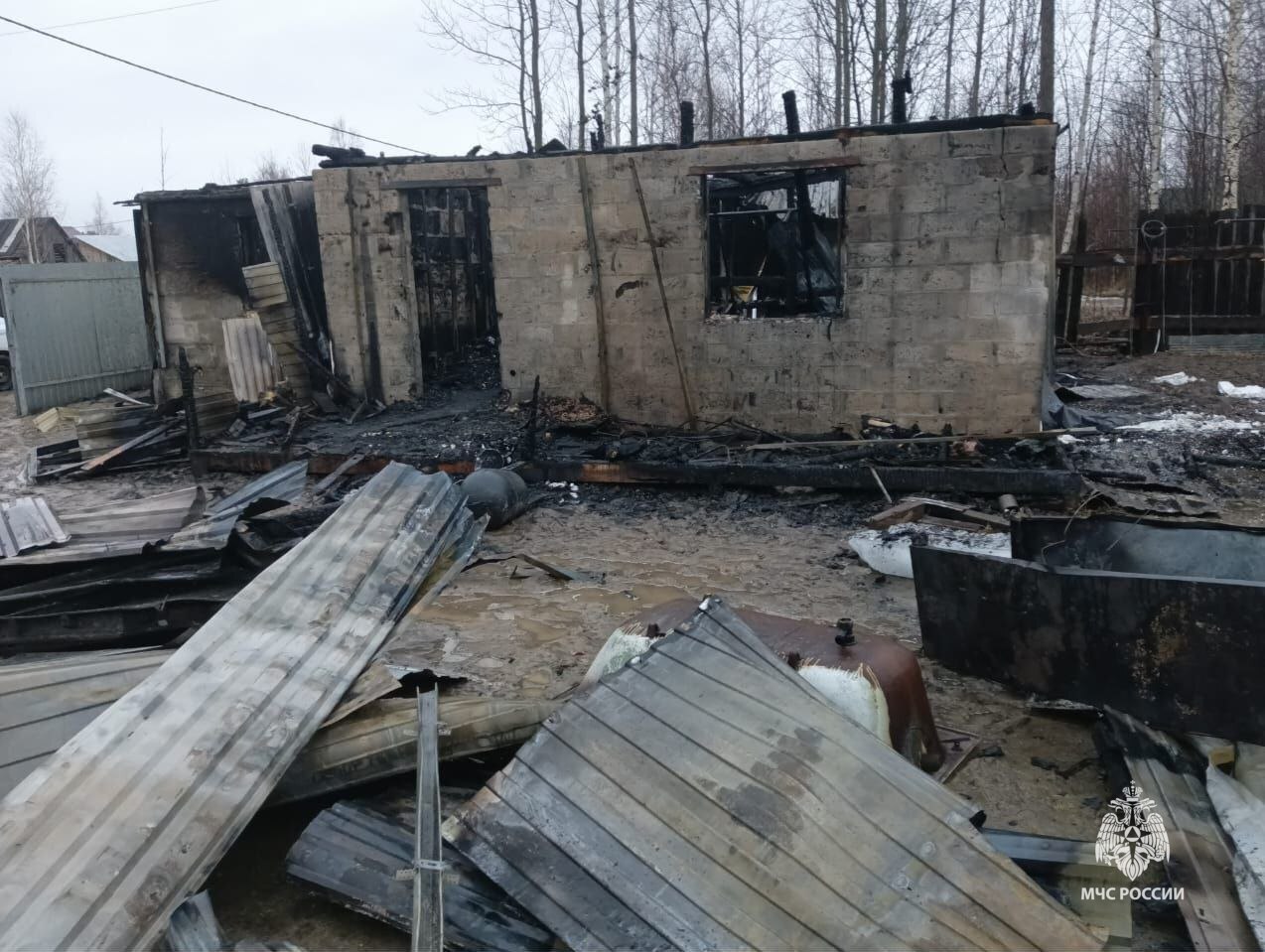 На момент прибытия пожарных расчетов дачный дом был полностью охвачен огнём на площади 48 квадратных метров, произошло обрушение кровли.