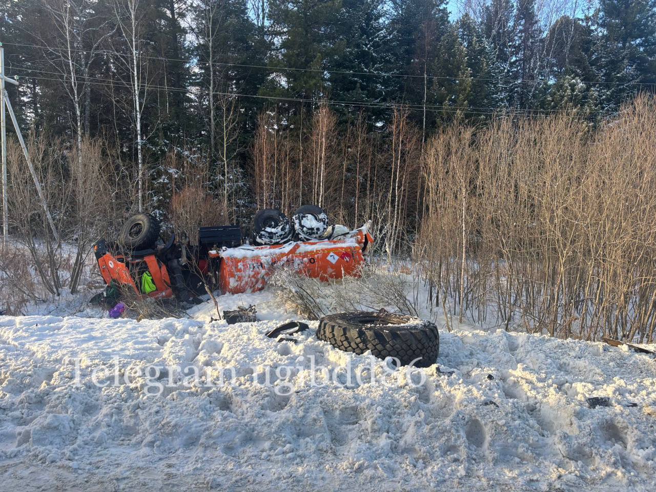 Сегодня, около 09:25 на 720 км автодороги «Тюмень-Ханты-Мансийск» в Нефтеюганском районе, 43-летний водитель «Маз», по предварительным данным, не справился с управлением, допустил занос, с последующим выездом на полосу встречного движения, где произошло столкновение с «Камаз», под управлением 62-летнего водителя.