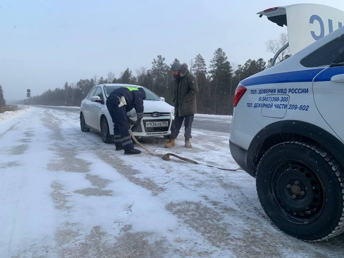 Автоинспекторы организовали буксировку, помогли водителю подсоединить автомобиль и сопроводили до ближайшей стоянки.