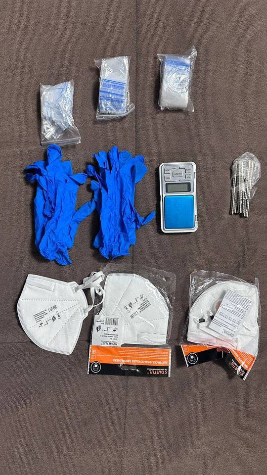 В ходе осмотра места происшествия сотрудники полиции обнаружили и изъяли наркотическое вещество из двух тайников, созданных подозреваемым. Кроме того, были найдены подготовленные к использованию зип-пакеты, изолента, маски и электронные весы.