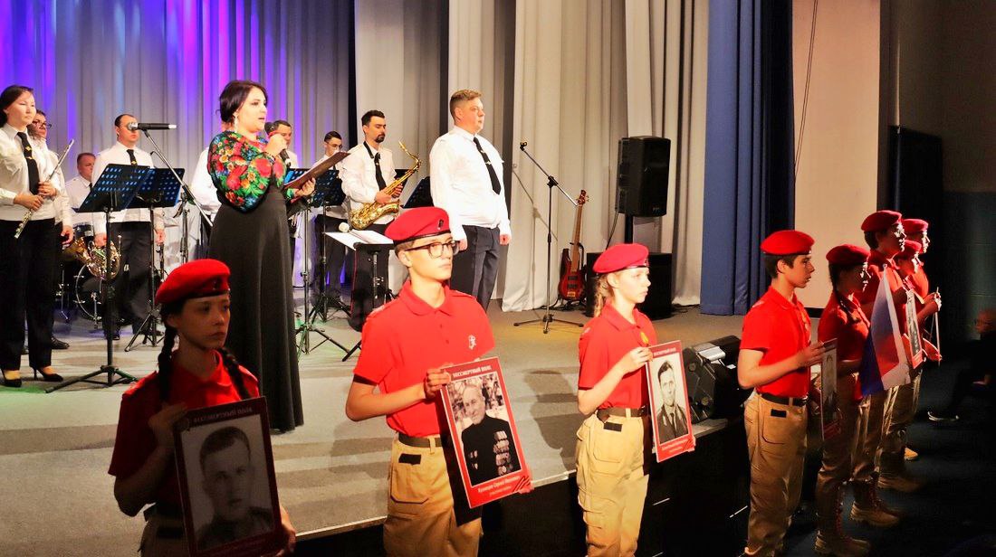 Программа концерта продемонстрировала единение, сплочённость и глубокое уважение к подвигам защитников Родины. Открыло мероприятие выступление оркестра югорской полиции с музыкальным номером «От героев былых времён». Во время исполнения на сцене появились юнармейцы Гимназии № 1 с портретами югорчан – ветеранов Великой Отечественной войны. Зрителям также были представлены песни «Война», «Два капитана», «Ведь я же русский», «Любить по-русски», воспевающие вечные ценности чести, достоинства и любви к Отечеству.