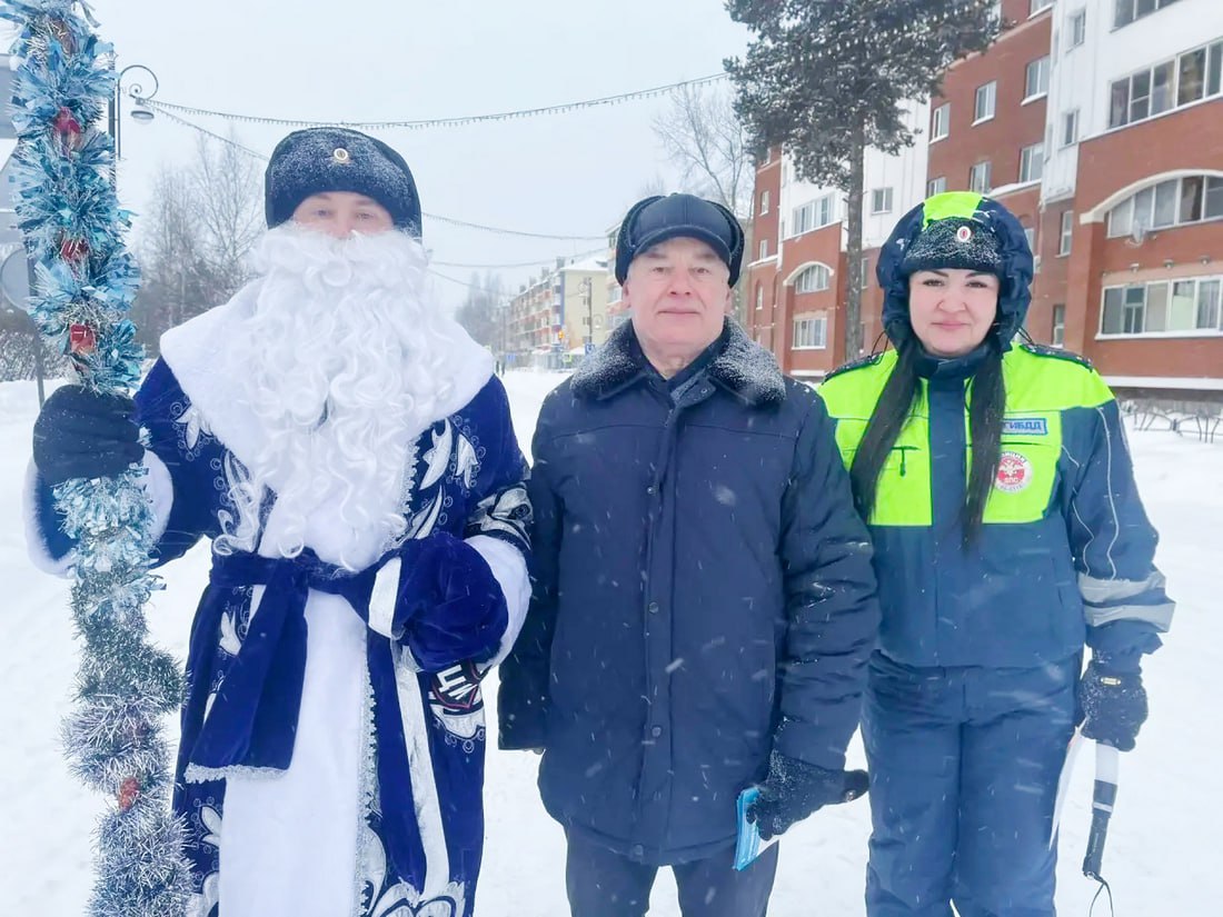 Сотрудники ОМВД России по Белоярскому району, члены Общественного совета при районном отделе полиции, а также Дед Мороз поздравляли автолюбителей и пешеходов с наступающими новогодними праздниками.