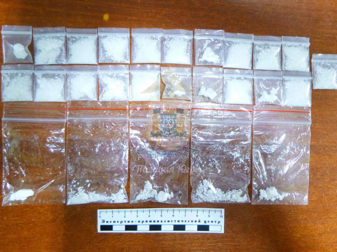 При личном досмотре у одного из подозреваемых полицейские обнаружили и изъяли 5 свертков с веществом белого цвета. В ходе осмотра места жительства обнаружено и изъято еще 26 свертков с веществом белого цвета.