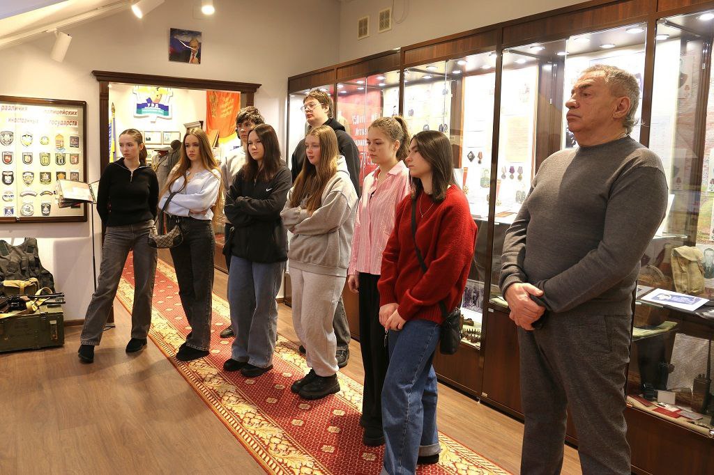 Экскурсия началась с рассказа о создании российской полиции, ее значении в обеспечении порядка и защите граждан. Ребята с интересом слушали Ирину Викторовну, обсуждали представленные в музее экспонаты и задавали вопросы, касающиеся службы в органах внутренних дел.Затем студенты узнали о нелегком пути советских военнослужащих, исполнявших свой интернациональный долг в Афганистане. Ирина Викторовна рассказала ключевые моменты истории, напомнила о важной дате – 15 февраля 1989 года, когда советские солдаты покинули территорию Демократической Республики Афганистан, завершив исполнение своего долга.