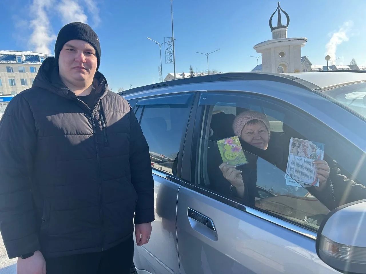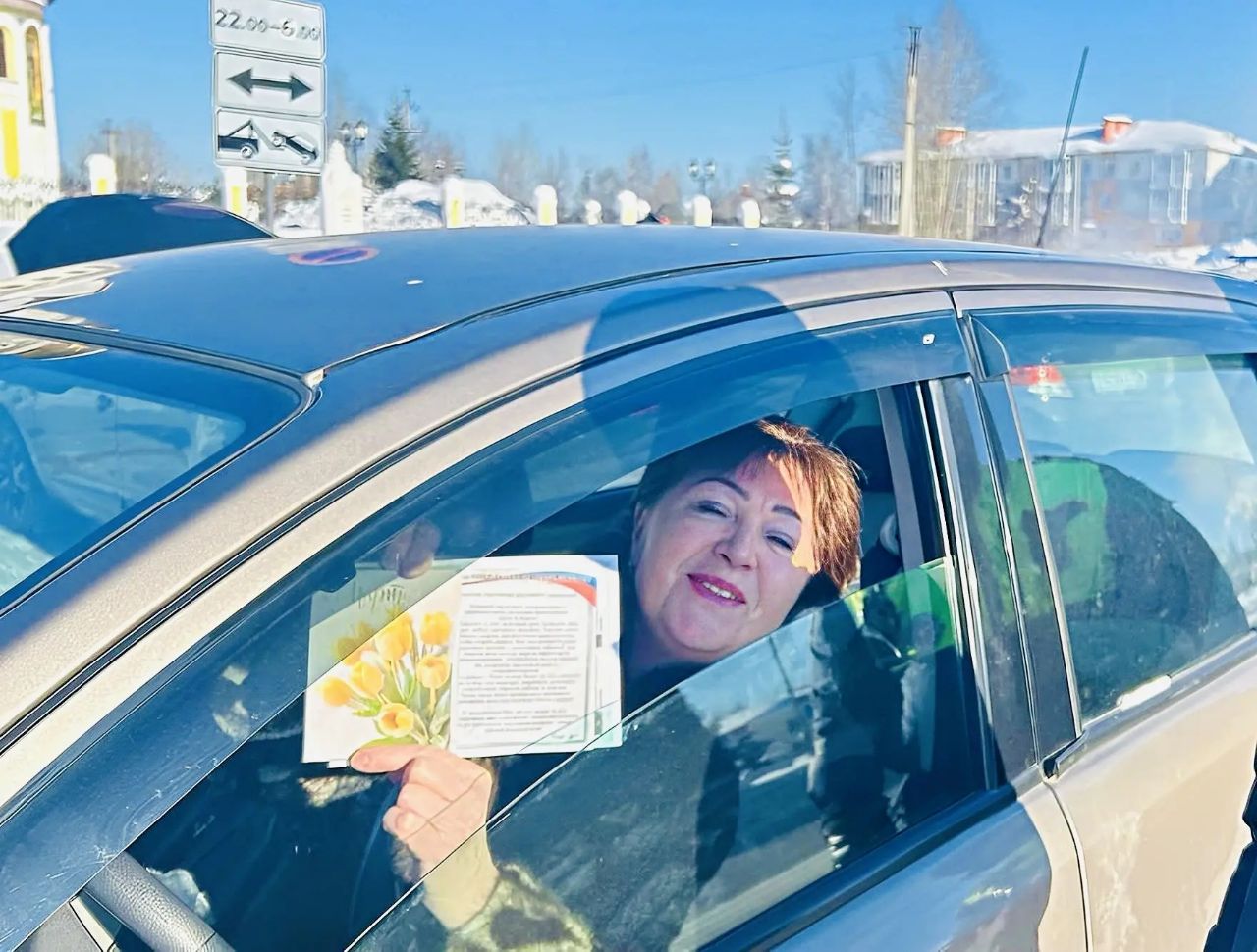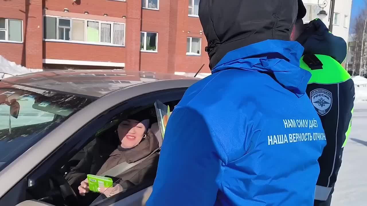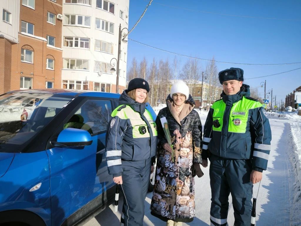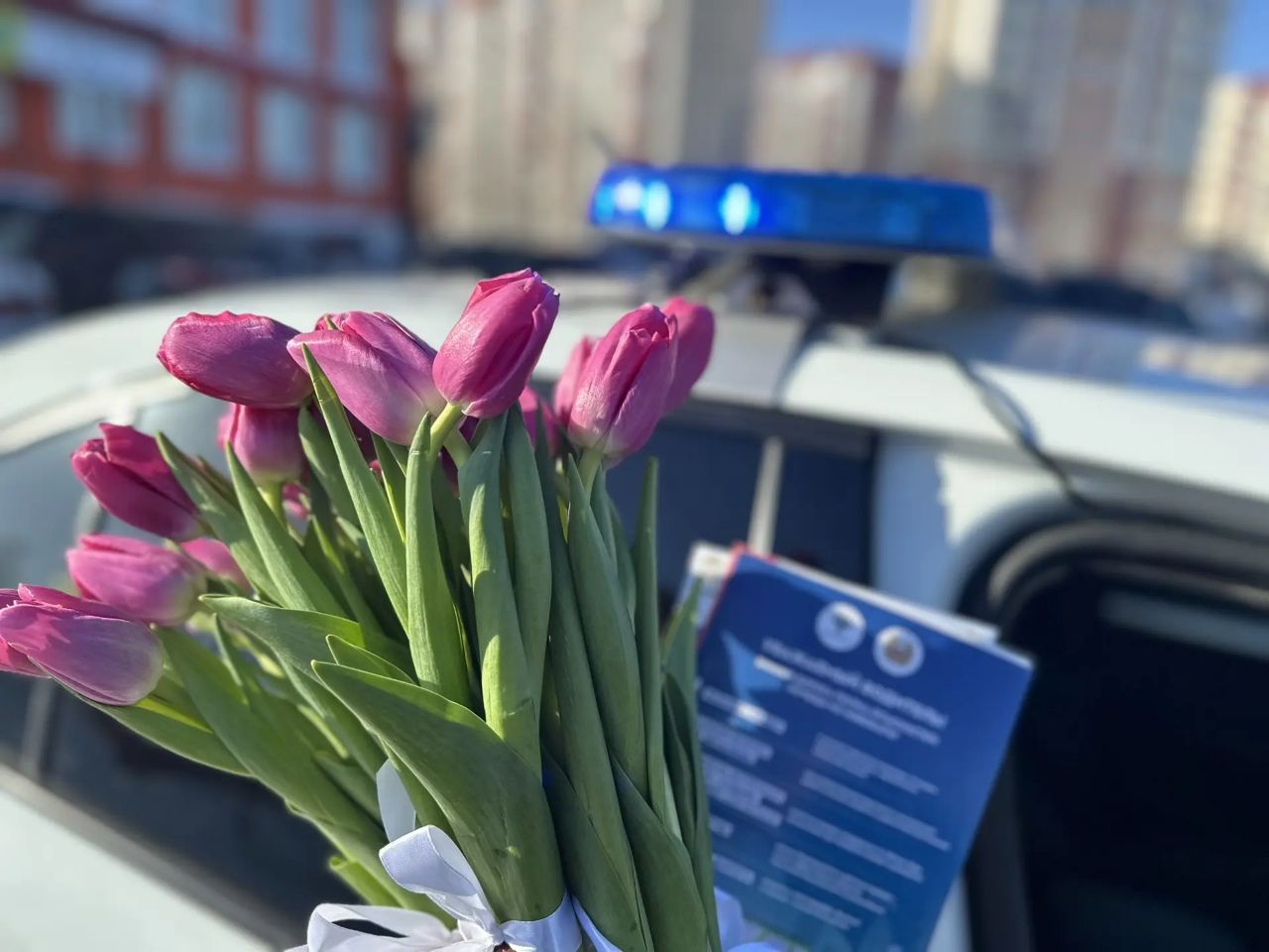 Акция «Цветы для автоледи» охватила всю Югру. Вместе с общественниками полицейские дарят весеннее настроение, открытки и комплименты.