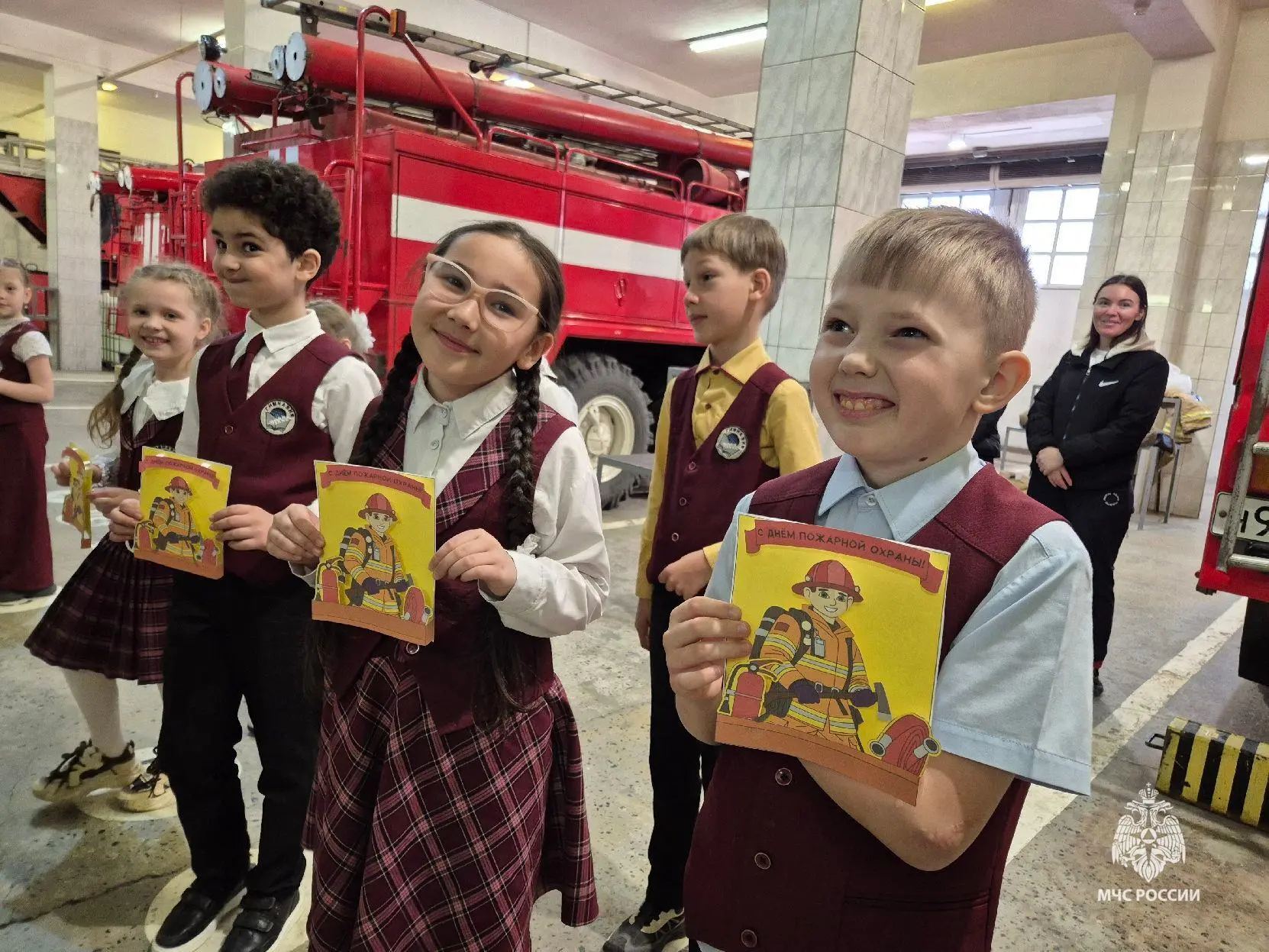 В свою очередь, сотрудники пожарно-спасательной части провели для юных гостей увлекательную экскурсию. Школьники смогли увидеть изнутри работу подразделения, познакомиться с боевыми машинами, примерить экипировку и снаряжение пожарных.