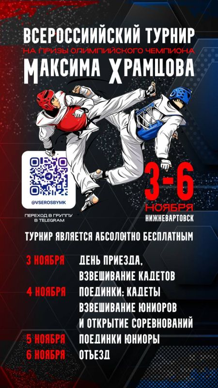С 3 по 6 ноября в спортивном комплексе «Олимпия» состоится Всероссийский турнир по тхэквондо на призы нашего прославленного земляка, Олимпийского чемпиона Максима Храмцова. К участию в соревнованиях приглашаются юноши и девушки в возрасте от 12 до...