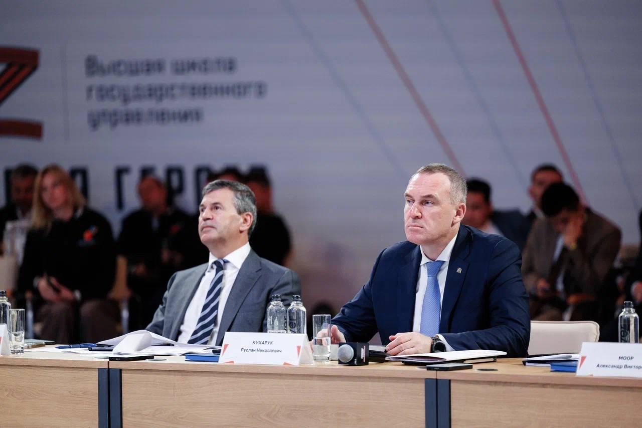 Губернатор Югры Руслан Кухарук вместе с ректором Президентской академии Алексеем Комиссаровым и главами регионов принял участие в оценке работ.