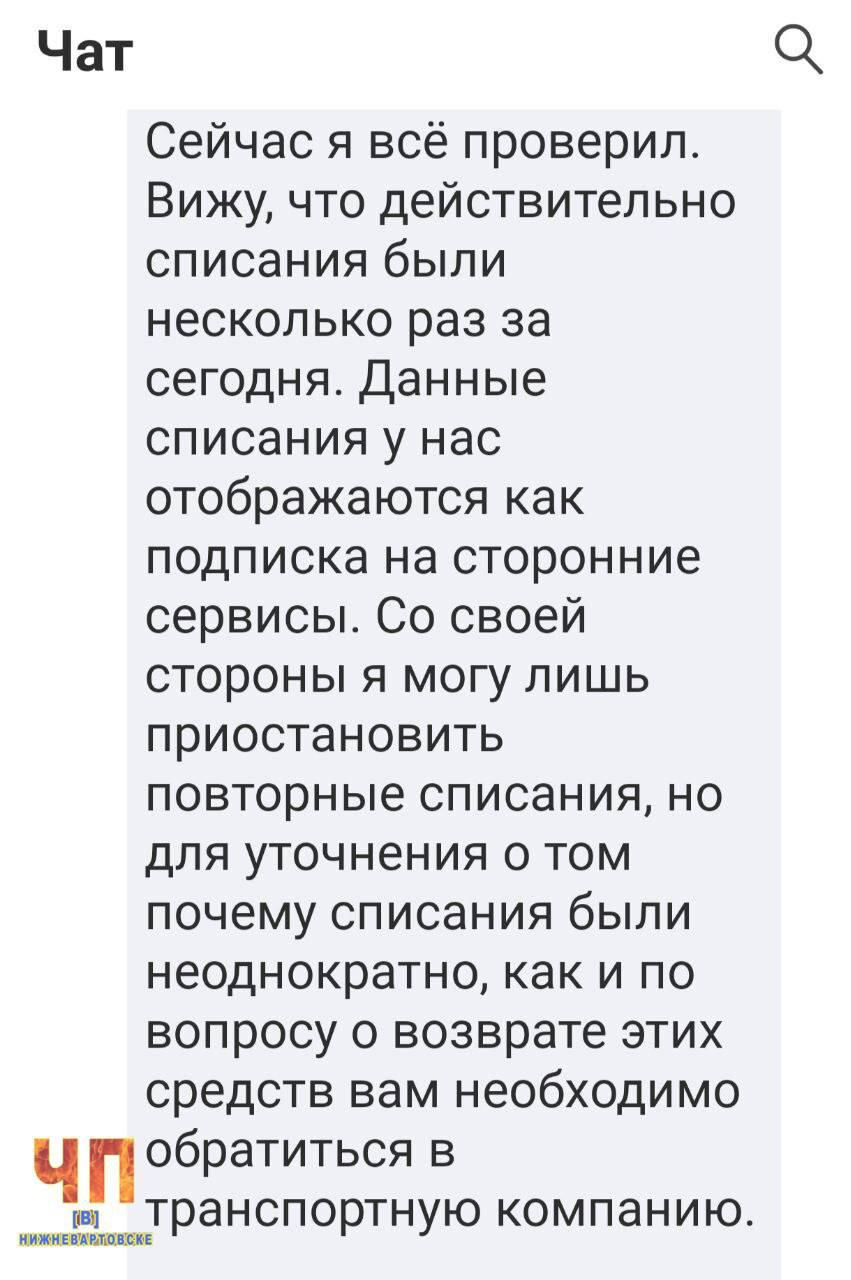 Вартовчанка не поверила в объяснения "Домтрансавто" о связи неконтролируемых списаний с работой терминала в офлайн режиме и нестабильным интернетом. И решила проверить.