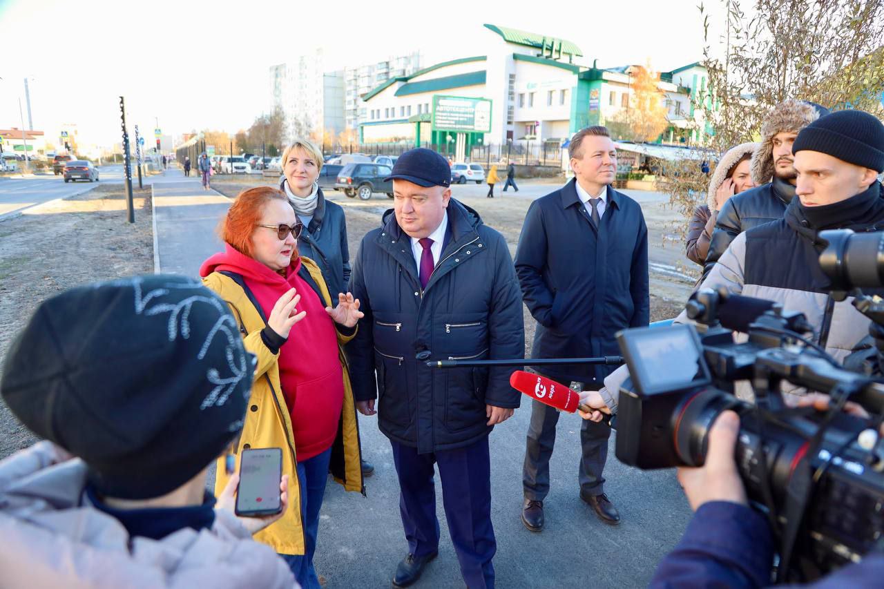 Вместе с коллегами, представителями общественности осмотрели Сиреневую аллею, веревочный полигон «Нити-Сити», площадку для выгула собак, новый тротуар и детскую площадку в 7-м микрорайоне.