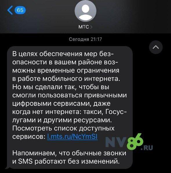 Вартовчане стали получать сообщения об ограничениях в работе мобильного интернета в целях безопасности.