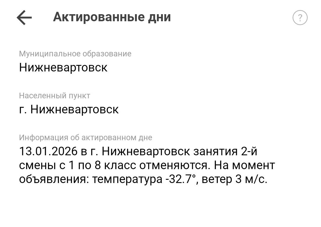 Опять несостыковочка. Городской портал образования сообщает об актировке во вторую смену с 1 по 11 классы. И это более актуальная информация:В случае возникновения сомнения в отношении данных об актированном дне, размещенных в приложении «Госуслуги....
