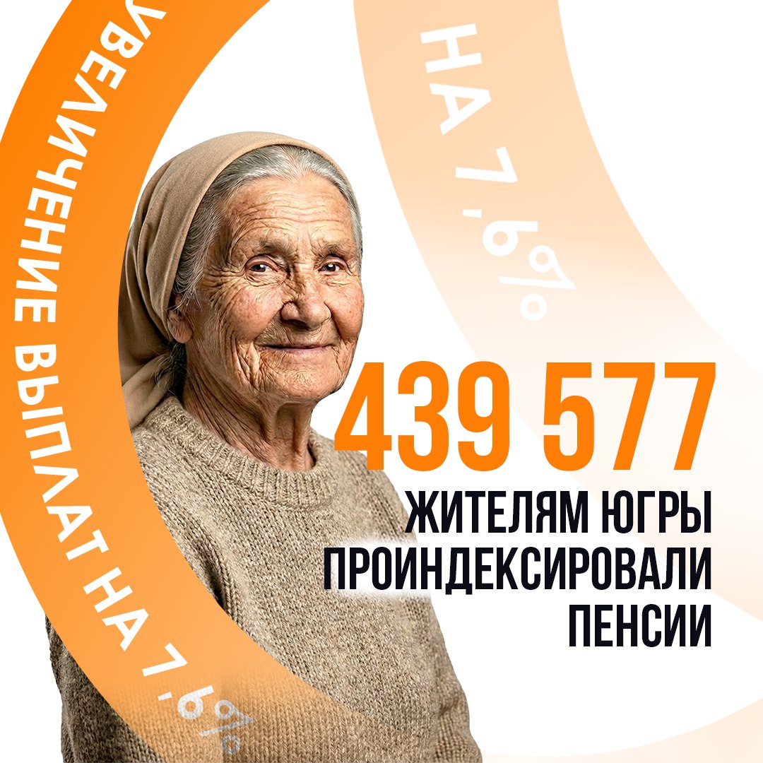 В округе проиндексировали страховые пенсии на 7,6%. Повышение коснулось более 439 тысяч югорчан. Перерасчёт прошёл автоматически, подавать заявление не нужно.