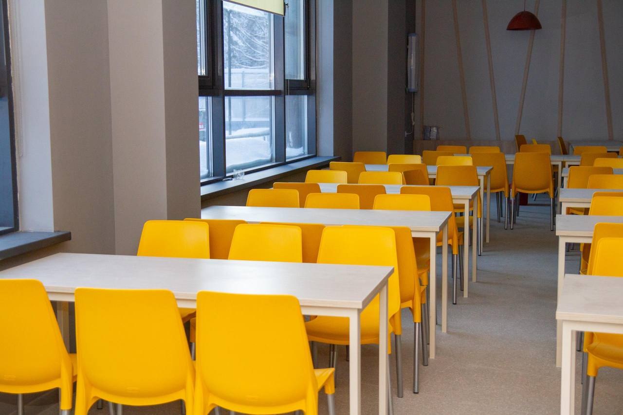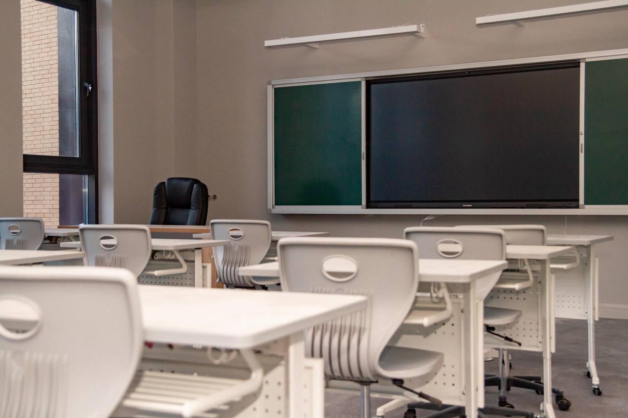 В четырехэтажном здании оборудованы современные аудитории, ITхаб для командной работы, центр виртуальной реальности, библиотека-медиацентр, актовый зал, столовая и медблок. В спортзале установлены скалодром и площадки для баскетбола, волейбола и минифутбола. Также на территории учреждения есть комфортное общежитие.