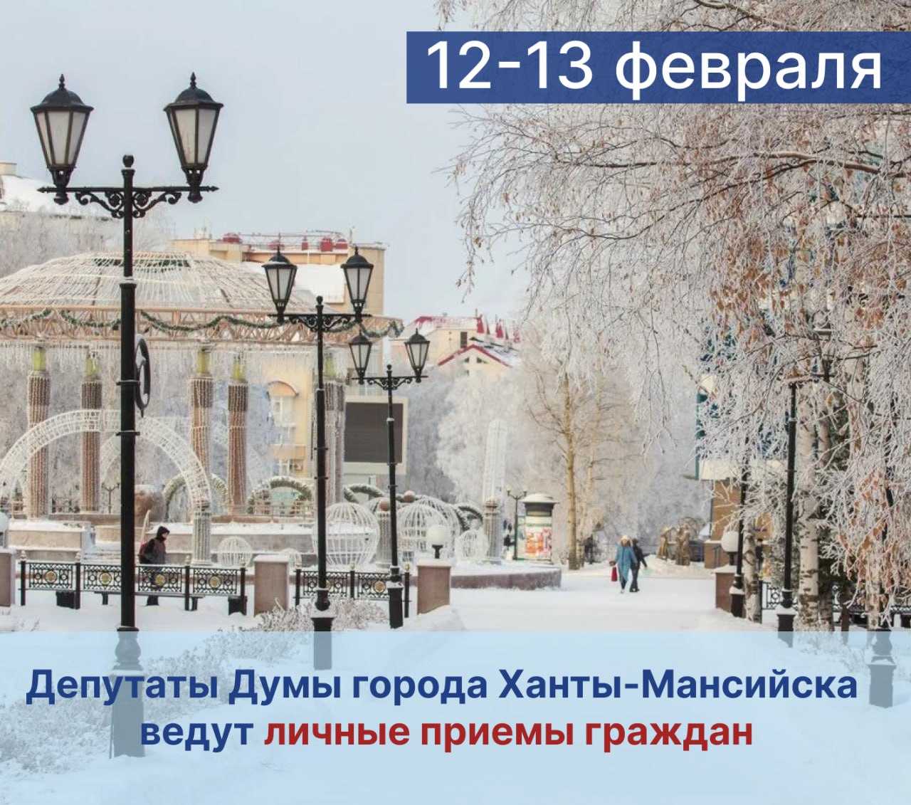 12 февраля, депутаты Думы города Ханты-Мансийска проводят личные приемы граждан.
