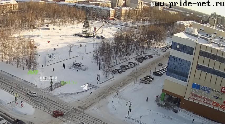 На площади Нефтяников разбирают елку и убирают новогодние фигуры