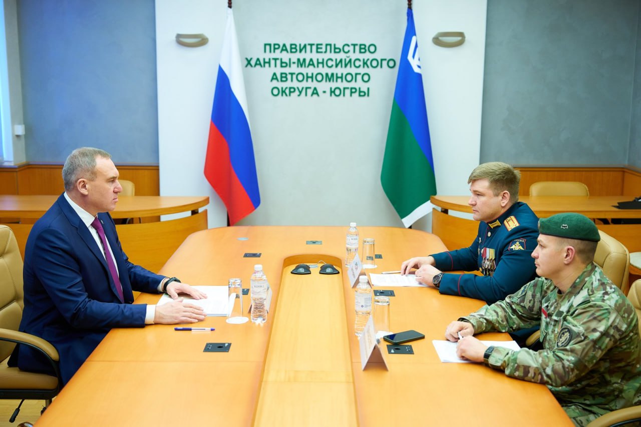 Ветераны СВО Павел Русин и Александр Панасенко сегодня встретились с губернатором Югры Русланом Кухаруком — их наставником в рамках образовательных программ «Время героев» и «Герои Югры».