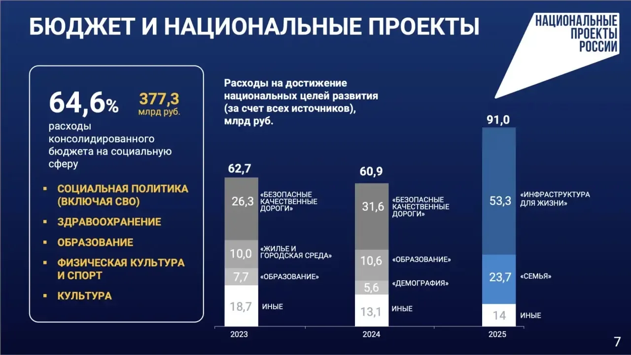 Руслан Кухарук: «Даже в непростых условиях наша бюджетная система остается устойчивой. В 2025 году почти 65% расходной части бюджета было направлено на социальные нужды. Это позволило в полном объеме выполнить все социальные обязательства: обеспечить поддержку участников специальной военной операции и их семей, предоставить социальные выплаты и провести индексацию заработных плат».