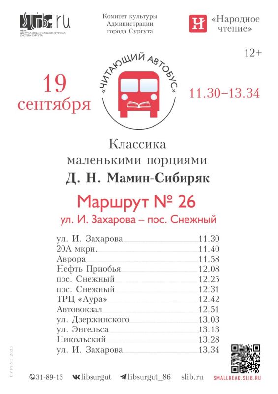 19 сентября в 11:30 от остановки «Ивана Захарова» стартует очередной «читающий» автобус, продолжающий четвёртый сезон проекта «Народное чтение».В этот раз героем акции станет писатель Дмитрий Наркисович Мамин-Сибиряк, чьи произведения рассказывают о...