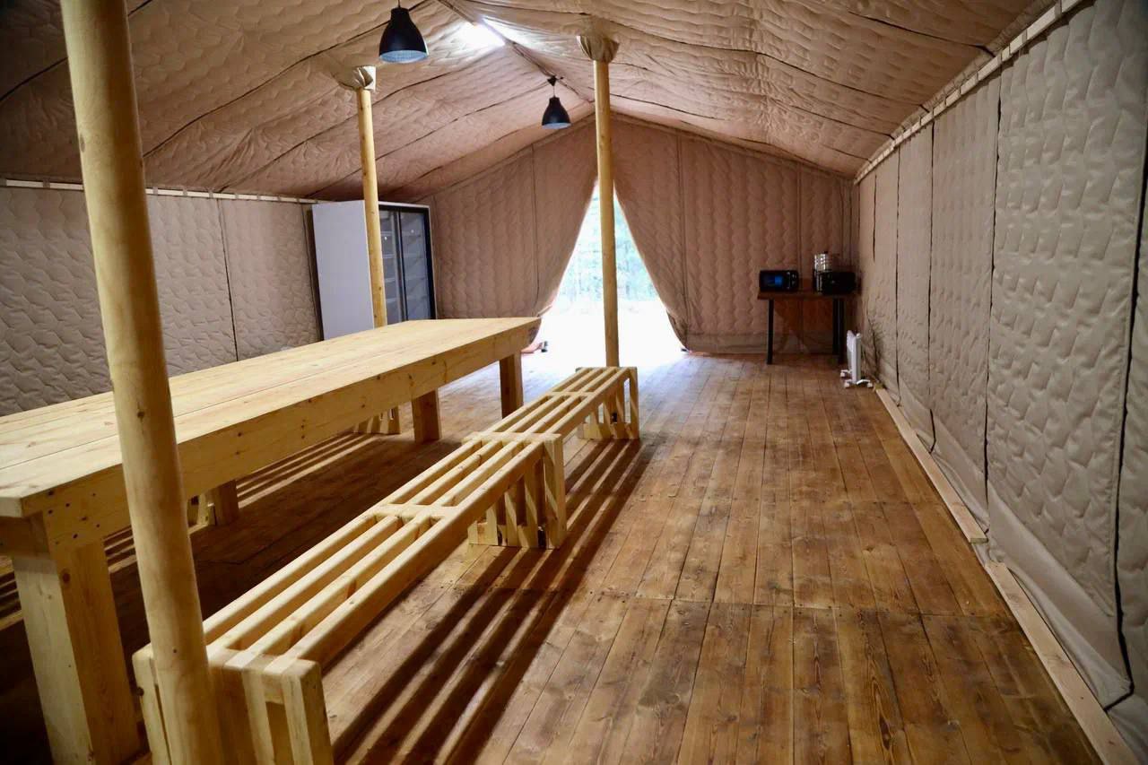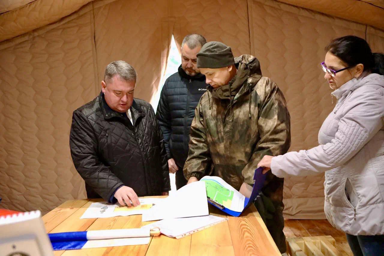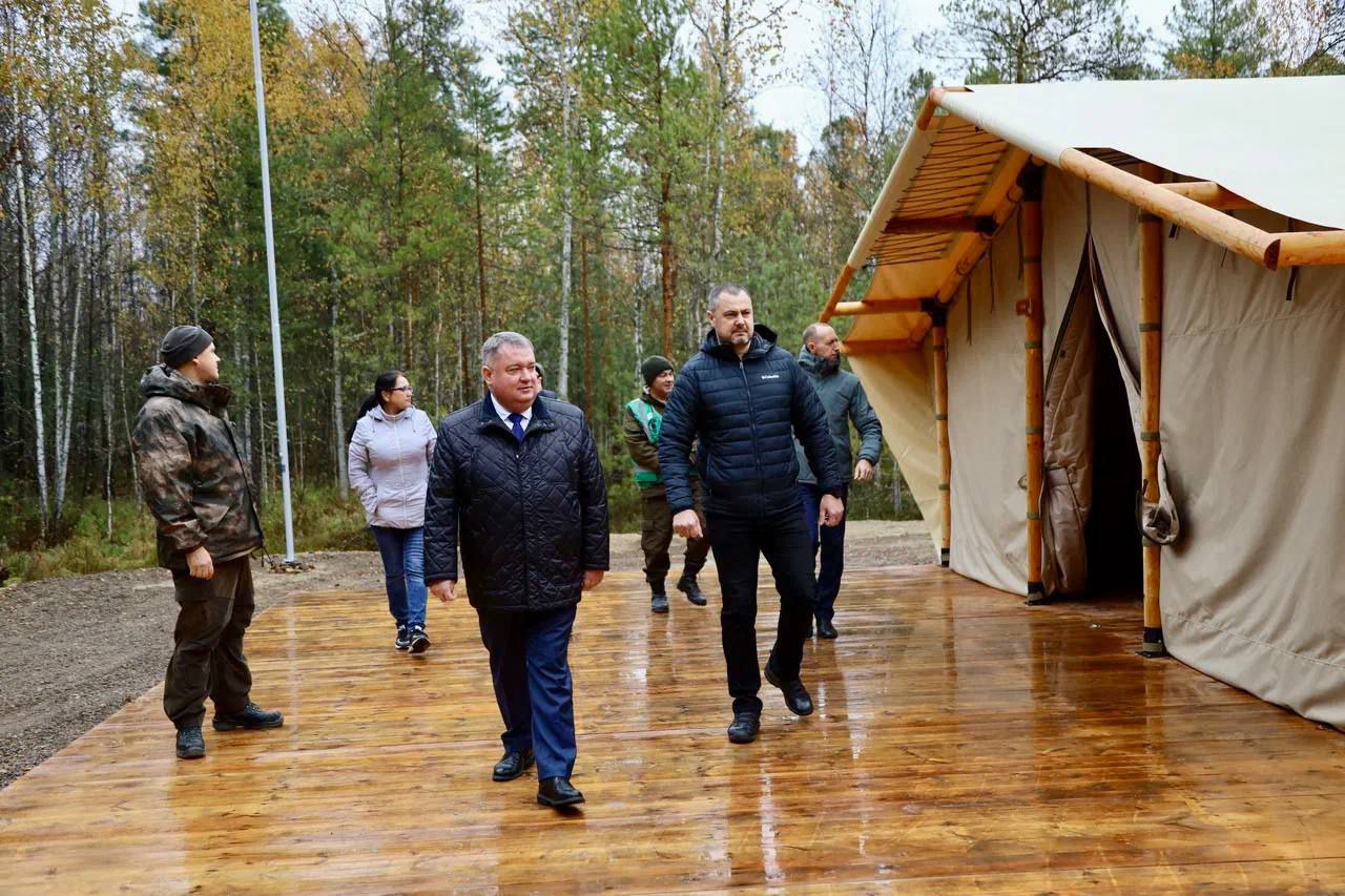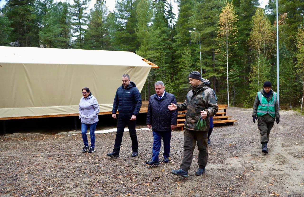 Осмотрели КПП, армейские палатки, зону отдыха с очагом, металлические контейнеры для хранения инвентаря и снаряжения. В сжатые сроки проведена большая работа по отсыпке территории, строительству настила и установке модульных конструкций. Объект возводился с учетом его круглогодичного использования и отвечает всем современным требованиям.