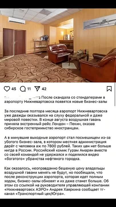 Известный стендапер ТНТ, который раскритиковал наш бизнес-зал, получил сладкий ответ от руководства аэропорта.