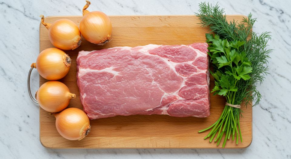 - Свинина: 1.5 кг – свежая, с прожилками жира для сочности.