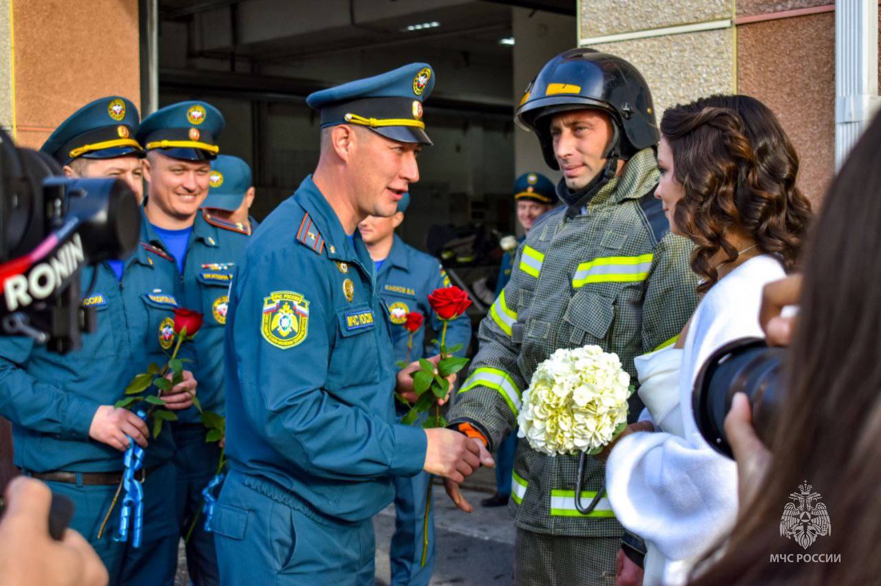 Коллеги поздравили сотрудника подразделения Романа Шабанова и его супругу Маргариту с бракосочетанием. На место работы новоиспеченного мужа пара пришла, следуя давней традиции посетить место службы. Коллеги организовали для виновников праздника особую программу: приветствие с использованием спецсигналов пожарной техники; символический водяной фонтан из пожарных рукавов. От коллектива молодым супругам были адресованы поздравления и пожелания крепкого семейного счастья, взаимопонимания и благополучия.