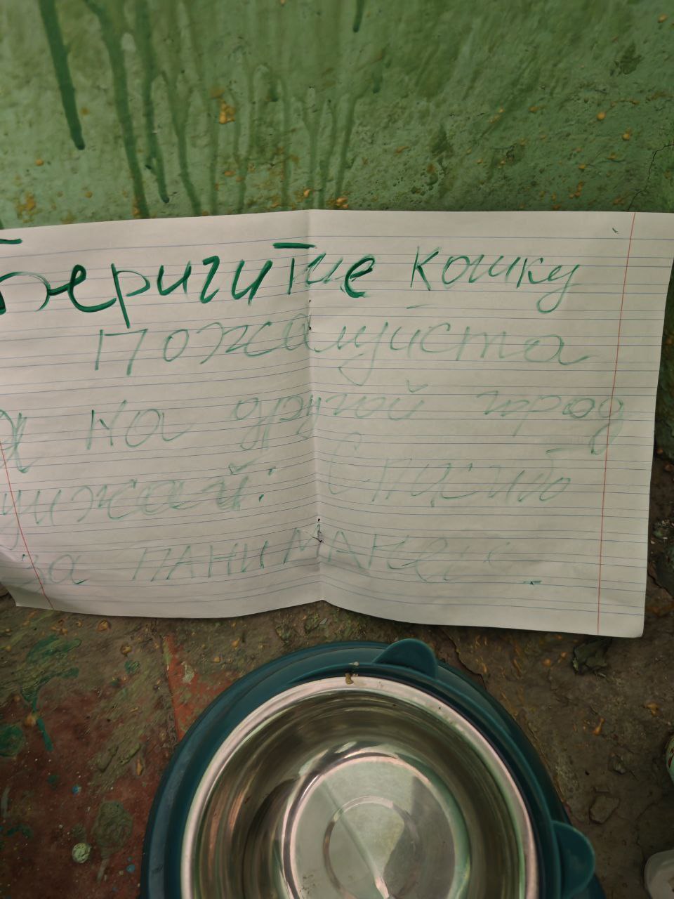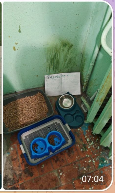 Вартовчане или невартовчане уехали и оставили соседям котика. В подъезде с трогательной запиской.