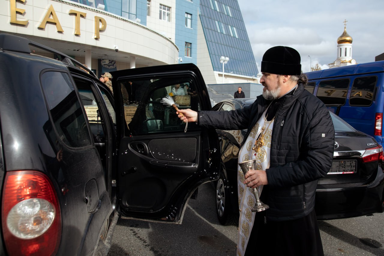 Перед отправкой груз освятил благочинный Сургутского благочиния Ханты-Мансийской епархии Русской Православной Церкви протоиерей Антоний Исаков, который пожелал удачи бойцам, сопровождающим груз.