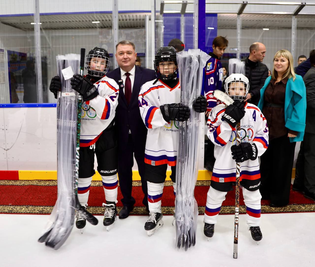 У ребят как раз шла тренировка. Был рад пообщаться с начинающими спортсменами (среди них и дети из семей участников специальной военной операции), вручить новый спортивный инвентарь (клюшки, шайбы), хоккейную экипировку, обсудить спортивные планы, услышать мнение об обновленной площадке для тренировок.