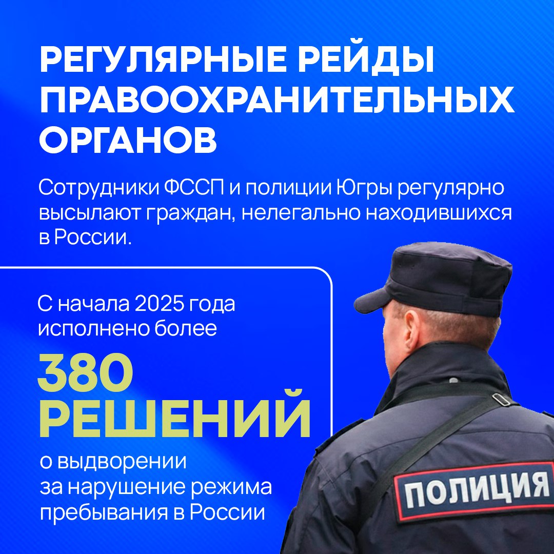 В регионе действует комплекс мер, направленный на эффективное противодействие нелегальной миграции. Система обеспечивает правопорядок и безопасность югорчан. В её основе — неукоснительное соблюдение законодательства нашей страны. Подробности — в карточках.