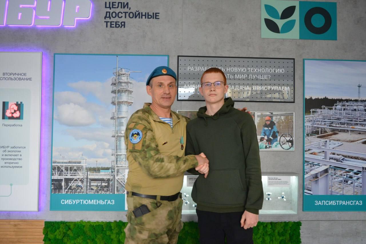 В ходе встречи военнослужащий с позывным «Алтайский» от имени городской общественной организации ветеранов боевых действий «Красная Звезда» и 56-го гвардейского десантно-штурмового полка передал благодарность студенту Илье Чуракову.