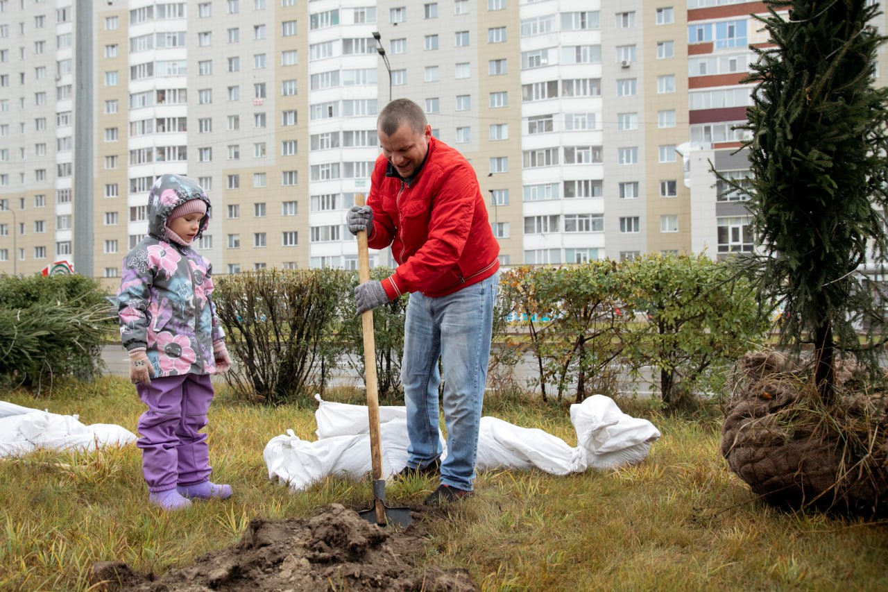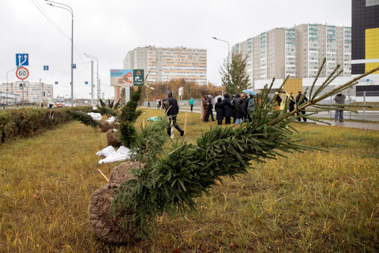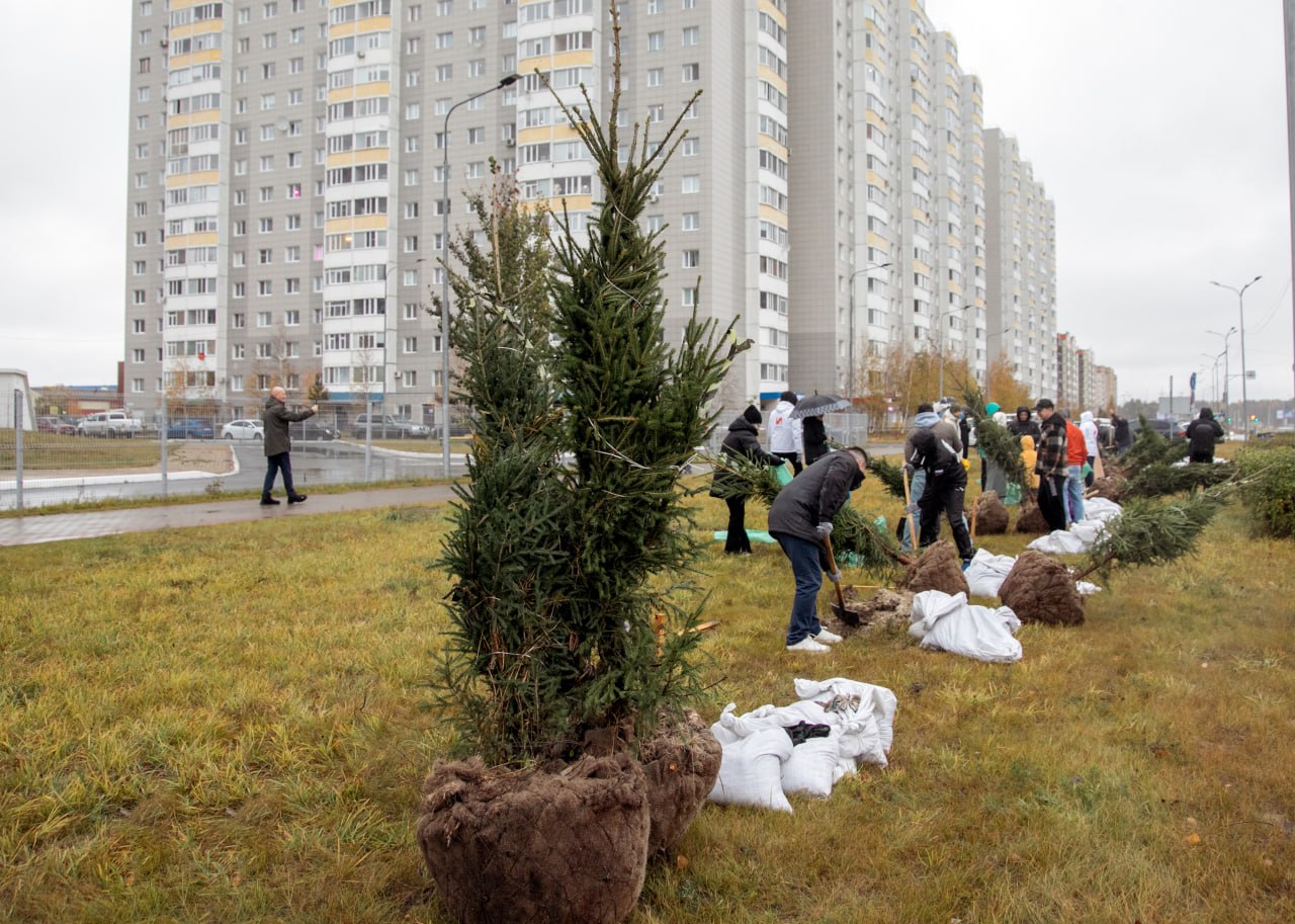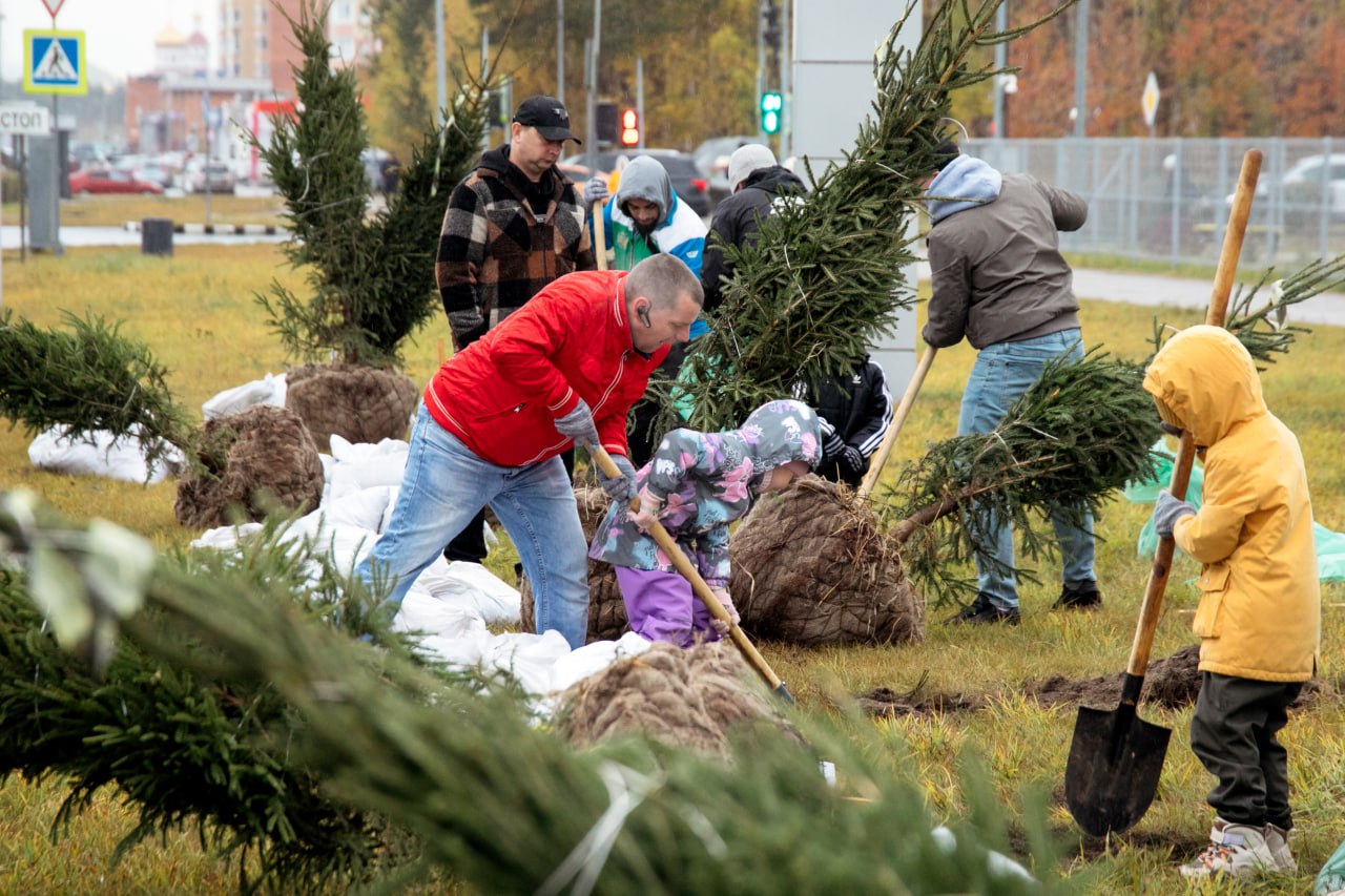 Около 20 елей высадили предприниматели Сургута в рамках экологической акции «Единый день посадки саженцев деревьев»