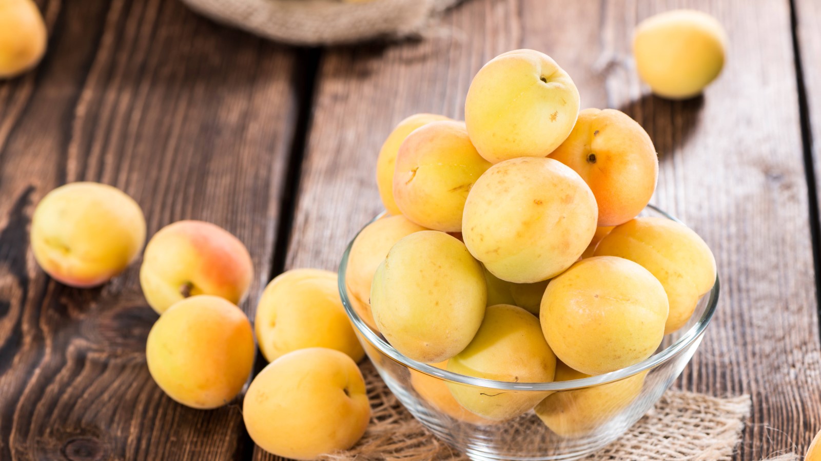 Очистите абрикосы от косточек и разложите по стерильным банкам. Добавьте к ним нарезанный ломтиками лимон и мяту. Залейте кипятком, накройте крышками и оставьте на 15 минут.