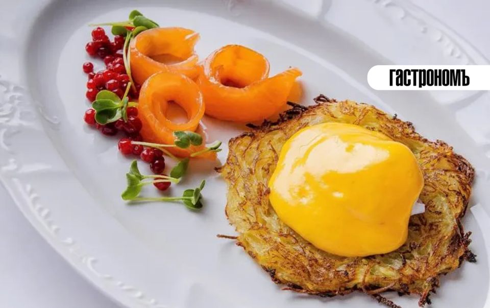 Вдохновляемый традициями русской кухни, шеф-повар гранд-кафе Dr. Живаго, Антон Кочура, предлагает картофельный драник с яйцом пашот и лососем. Этот завтрак выделяется разнообразием вариантов: вместо лосося можно использовать любую другую рыбу или даже мясо. Секрет удачного рецепта — в приготовлении голландского соуса. Для этого необходимо взбить яичный желток с водой на водяной бане, добавить масло, и затем отрегулировать вкус при помощи соли и лимонного сока.