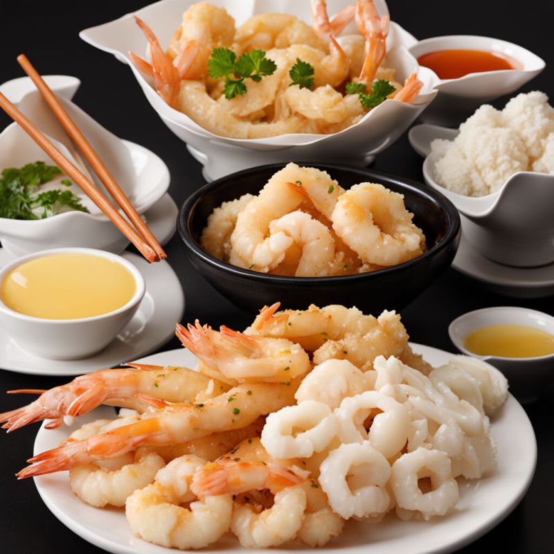 - Мука и яйца: для теста, которое используется в темпуре и других блюдах.
