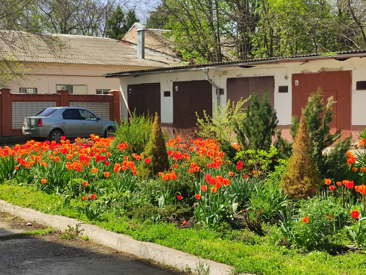- Тюльпаны: Яркие красные тюльпаны весной радуют глаз и поднимают настроение, заменяя серые гаражи вокруг.