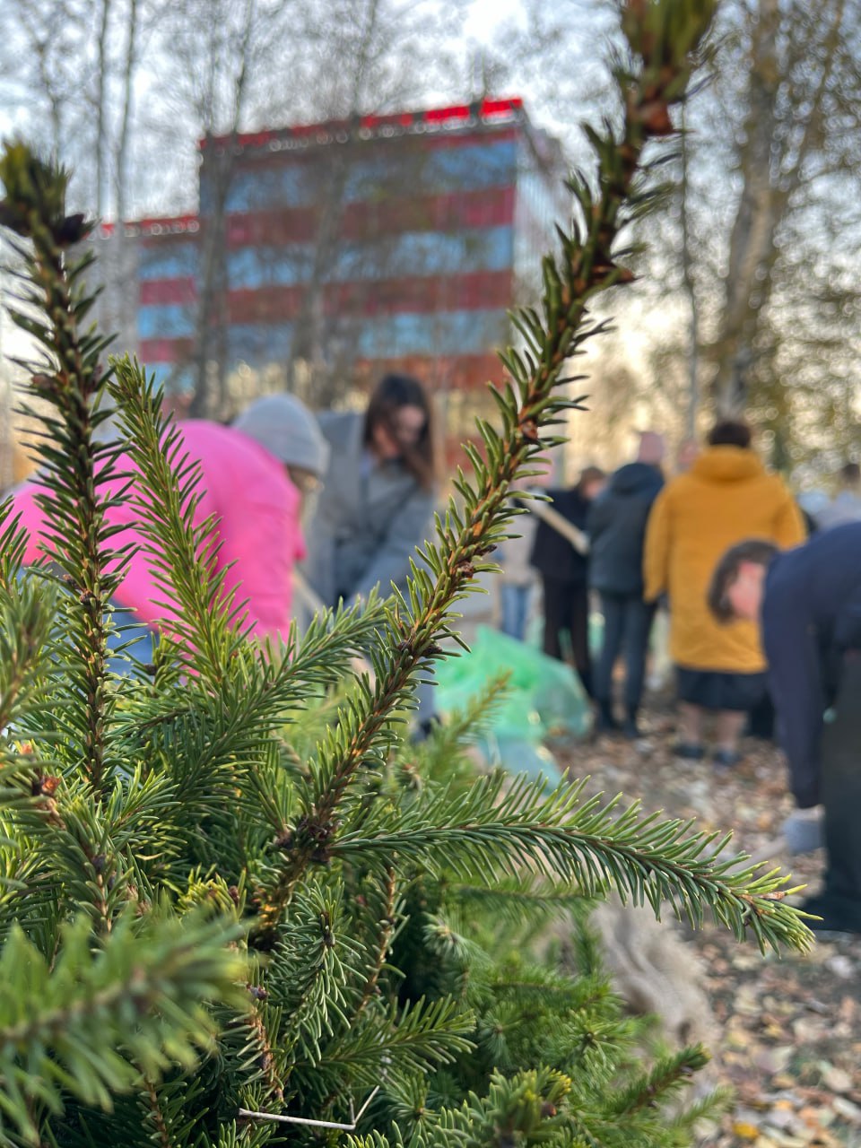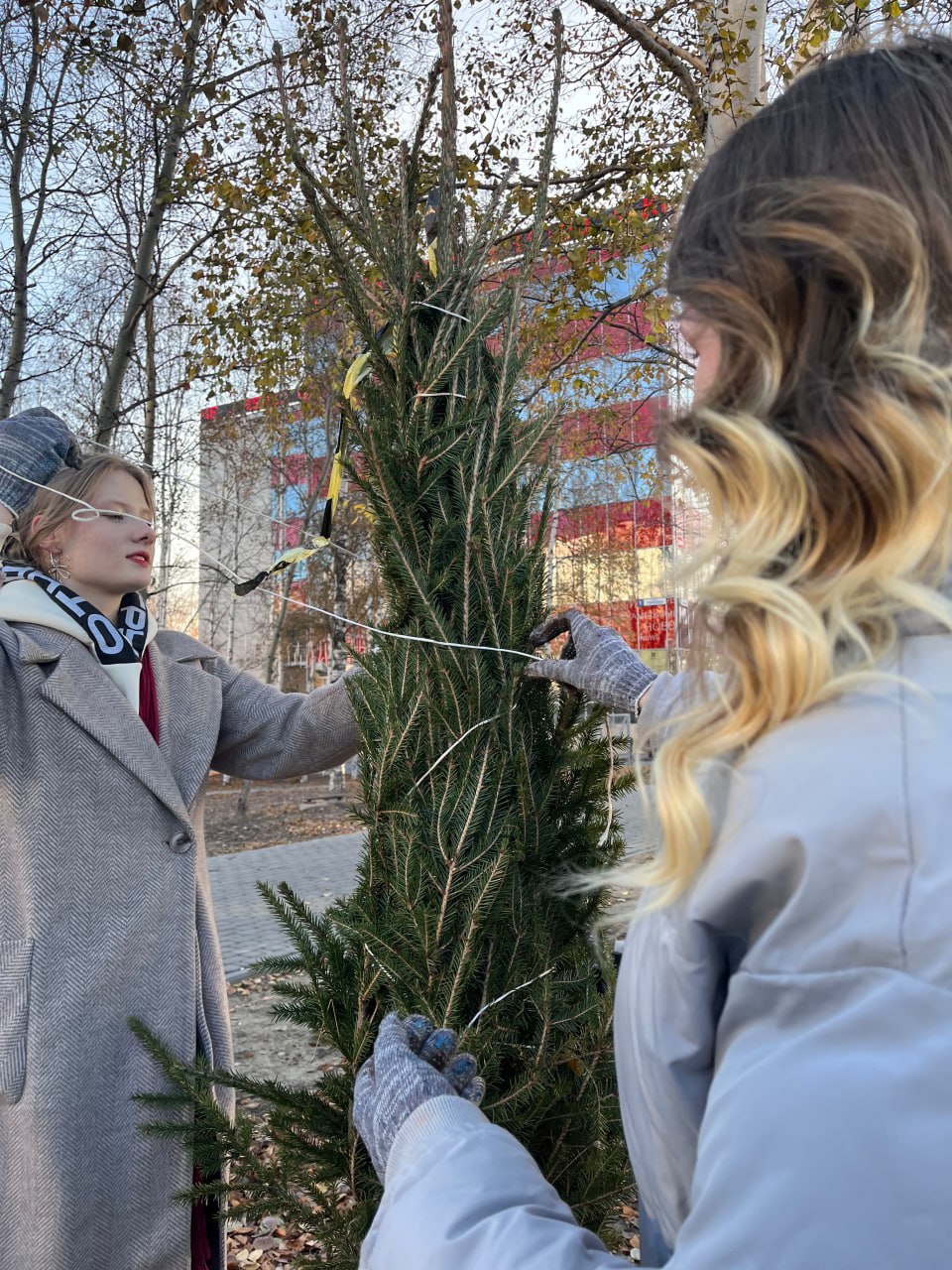 Участие в благоустройстве территории сквера и высадке молодых ёлочек приняли будущие работники СМИ – более десятка первокурсников направления «Конвергентная журналистика», а также их преподаватели.