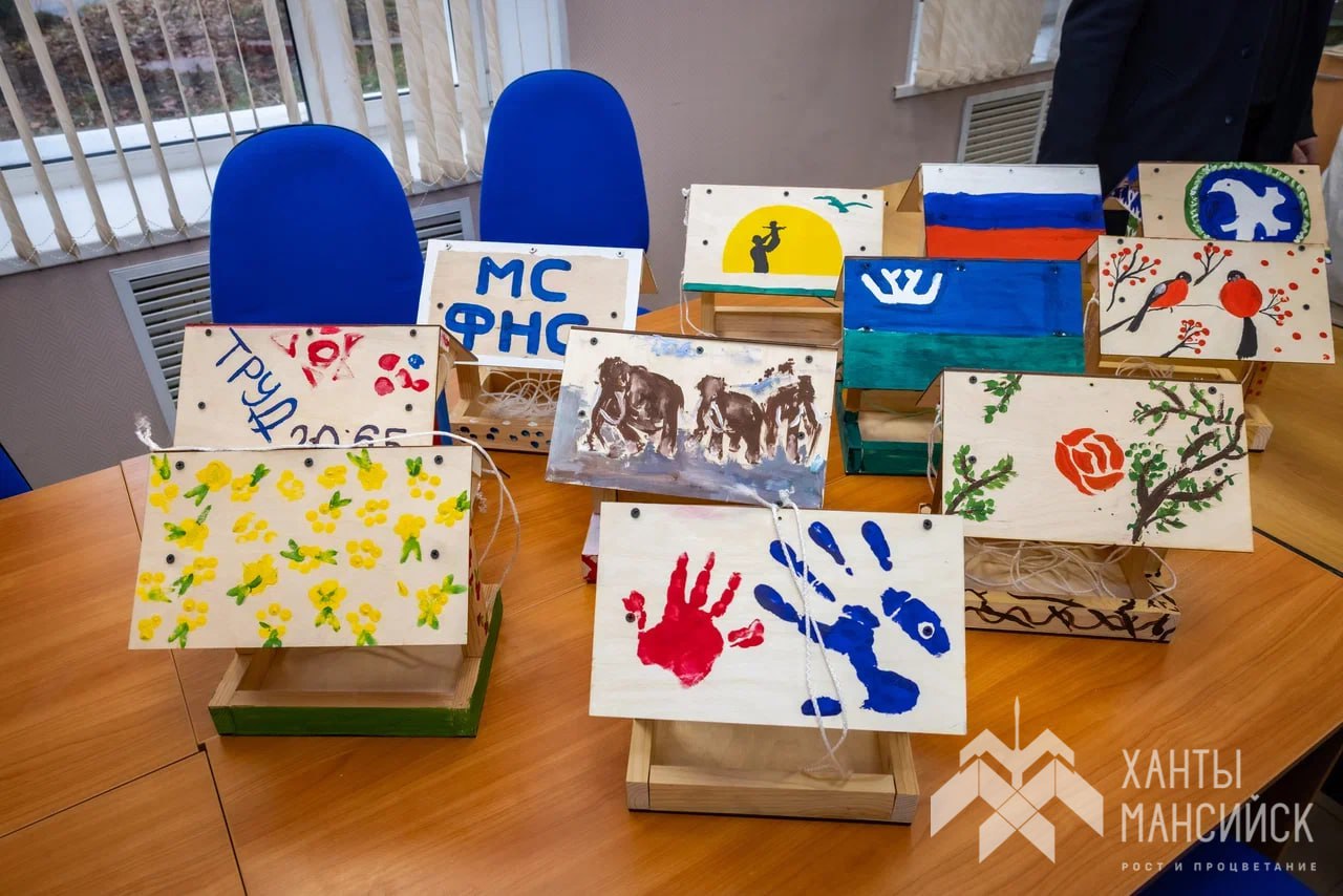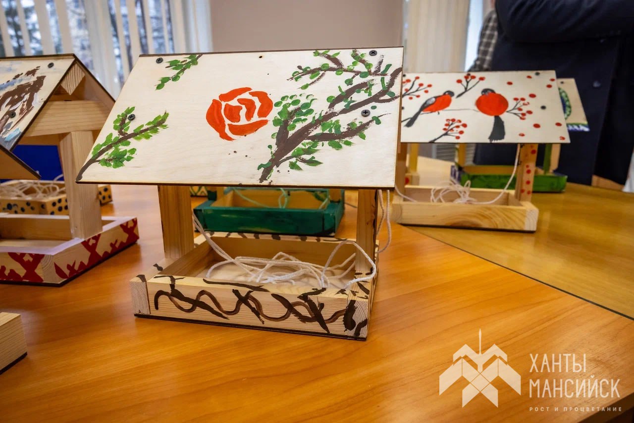 Сегодня в рамках акции «С заботой о природе» Управление общественных связей Администрации Ханты-Мансийска передало в Самаровский чугас 11 кормушек для птиц и мелких зверей.