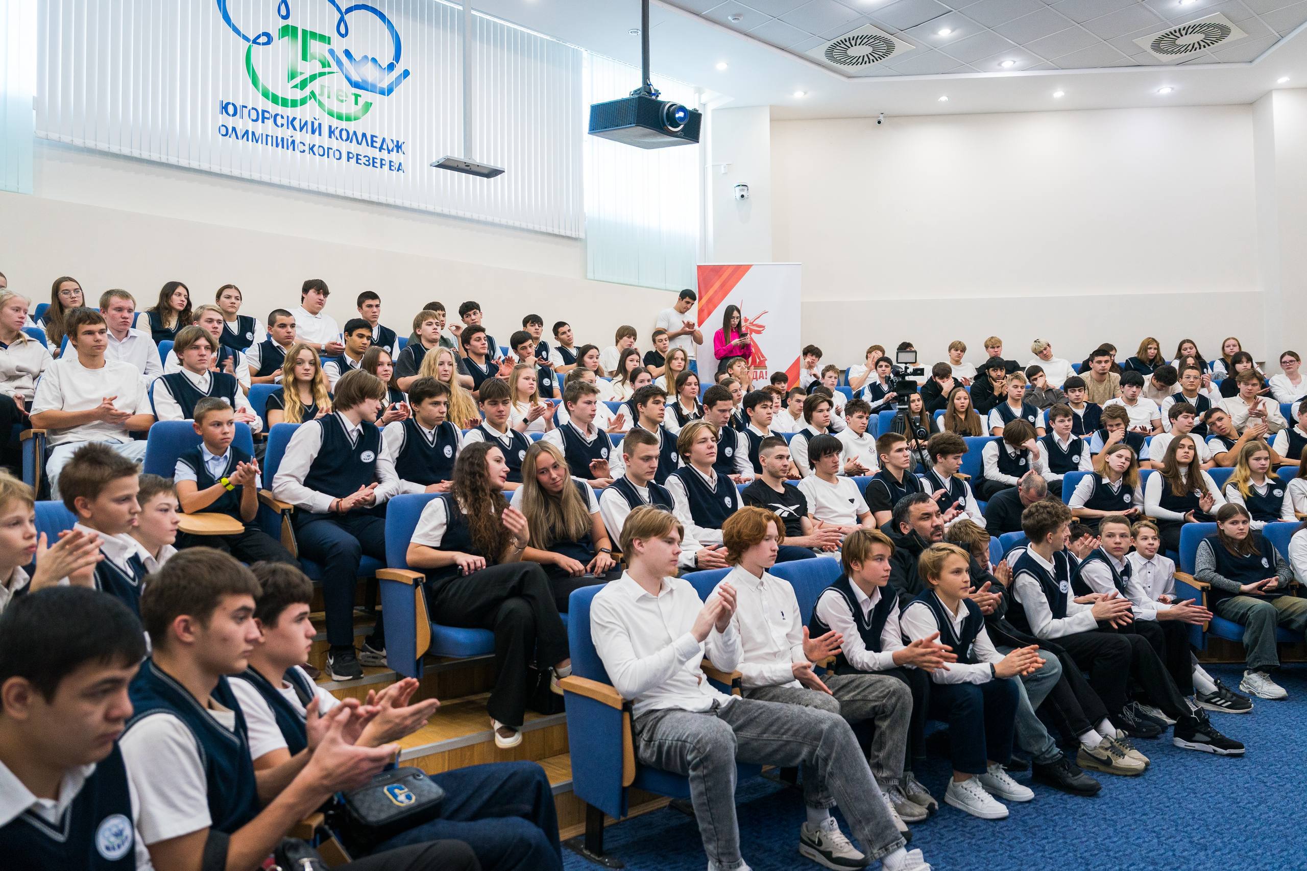 Воспитанники Югорского колледжа-интерната олимпийского резерва получили возможность лично пообщаться с военнослужащими — руководителем региональной Ассоциации ветеранов СВО Дмитрием Аксеновым и участником проекта «Герои Югры» Русланом Вахитовым.
