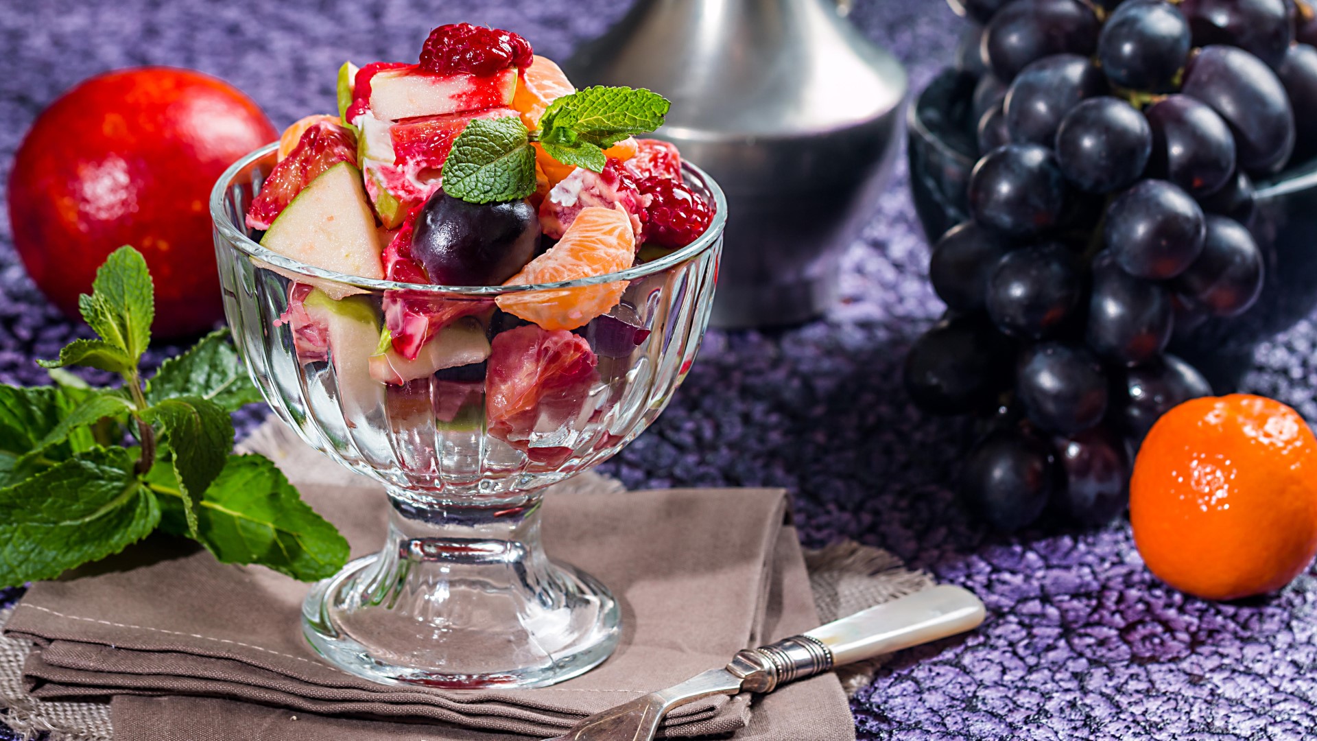 На новогоднем столе частенько фигурируют фрукты. Вот только обычная нарезка смотрится скучновато и громоздко. Вместо нее можно приготовить оригинальный салат. Времени уйдет даже меньше, а домочадцы будут от него в восторге!